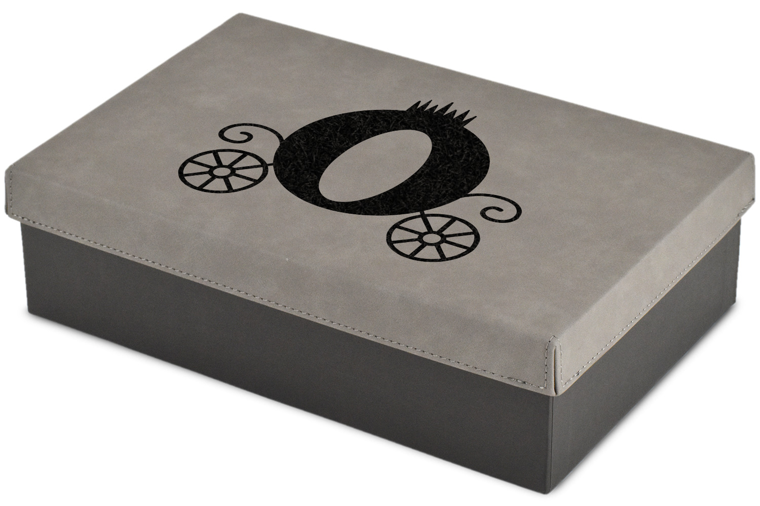 These gift boxes are available in 3 different sizes to accommodate various sized gifts. Available in gray as a neutral color for any occasion as well as to showcase your design boldly. Engraved with a laser this high quality paper board and faux leather gift box is unique and makes any gift stand out.