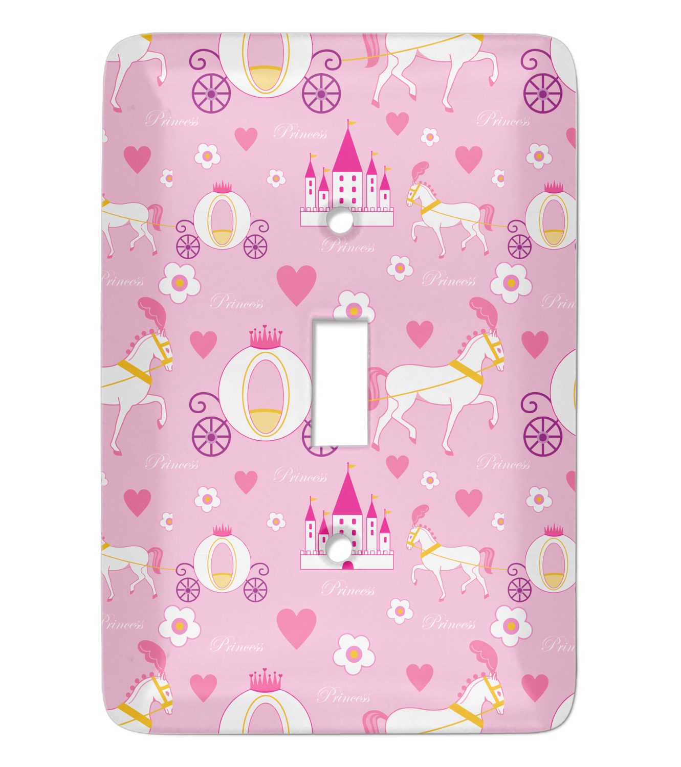 This pretty pink print makes the statement that your little girl is the Princess. This print features a palace horse and a royal carriage as your Princess makes her way to the castle in a flurry of flowers and hearts.