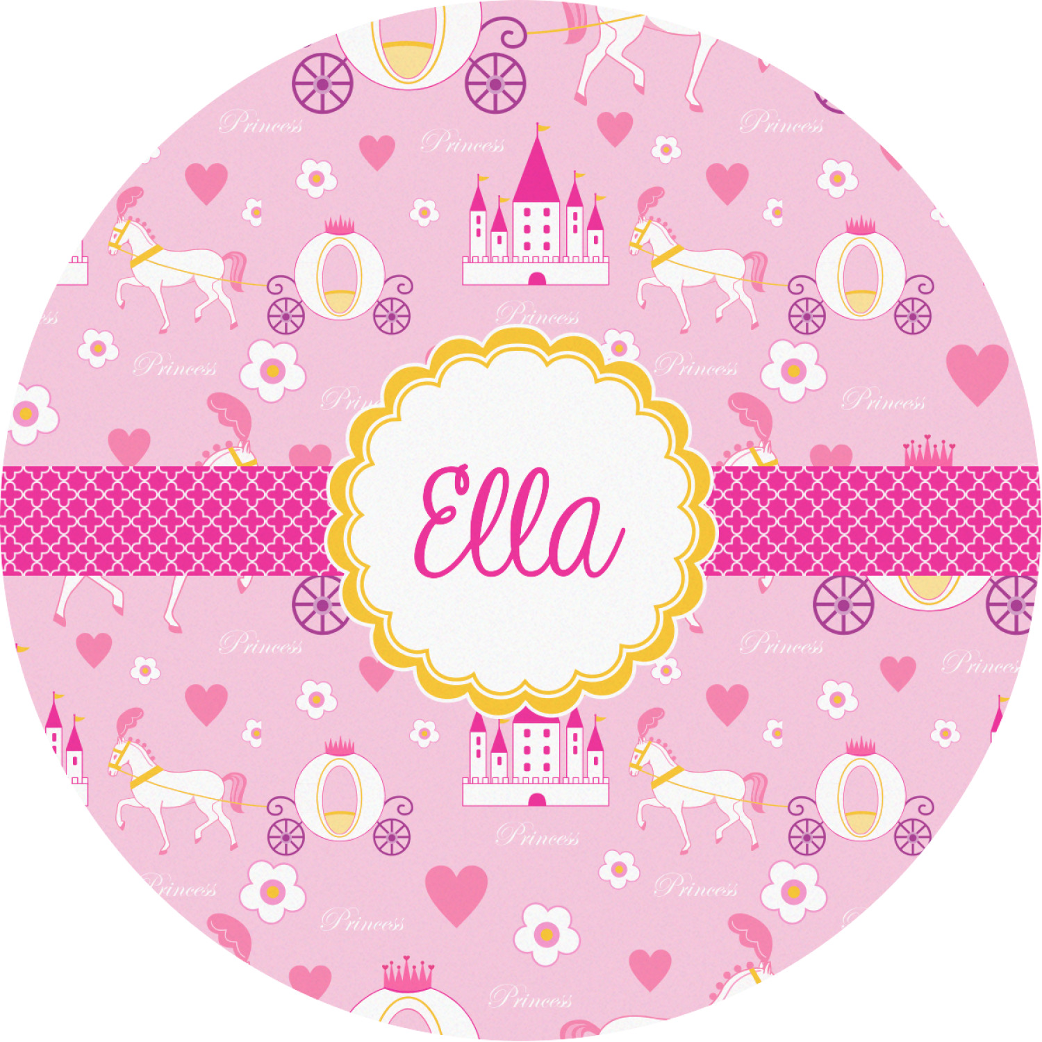 The center piece of the design is a yellow scalloped label, the perfect place for the name of a princess.