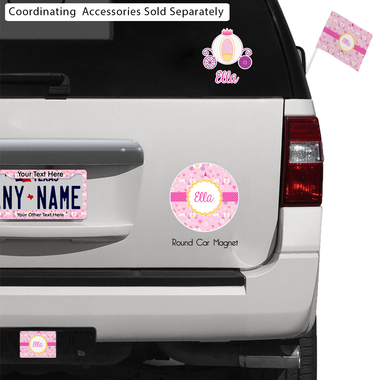 The center piece of the design is a yellow scalloped label, the perfect place for the name of a princess.