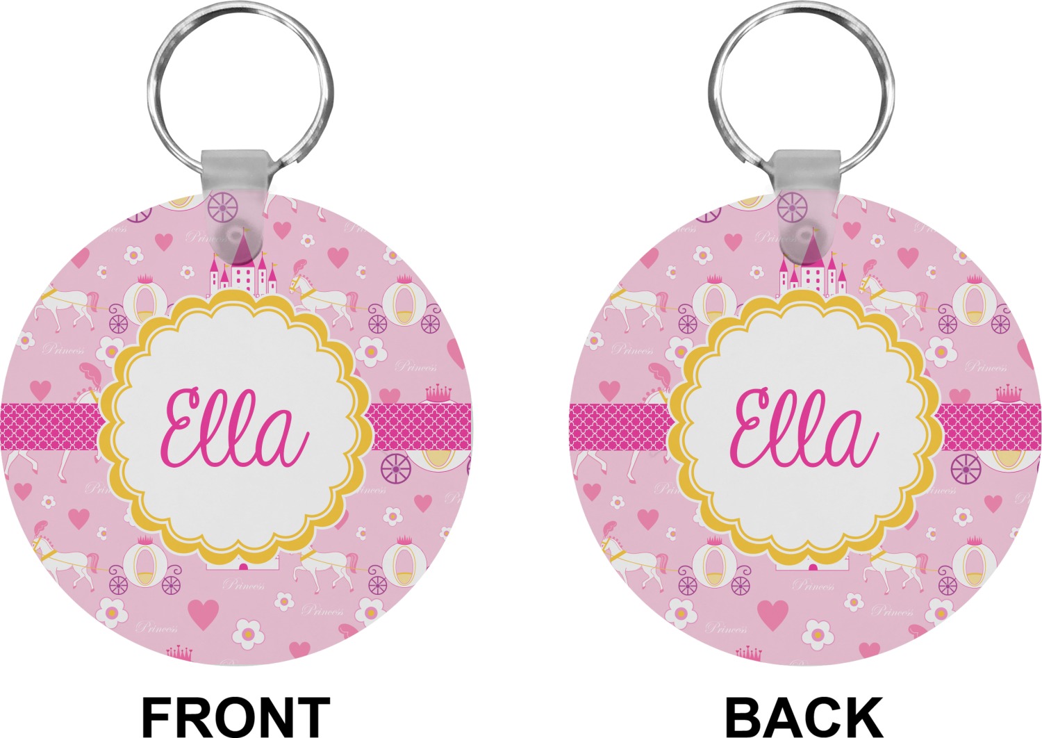 Our personalized keychains attach to the included metal, split key ring with a plastic, removable snap. Since a metal ring is included with your purchase, you have the liberty to keep your keys together on the ring, with or without your unique keychain. We offer this keychain in three different shapes: circle, heart, or diamond. We print your personalized design(s) on both sides of the key chain, and the surface has a glossy, reflective finish that only emphasizes your design. Each keychain is approximately 2.25 by 2.25 inches.
