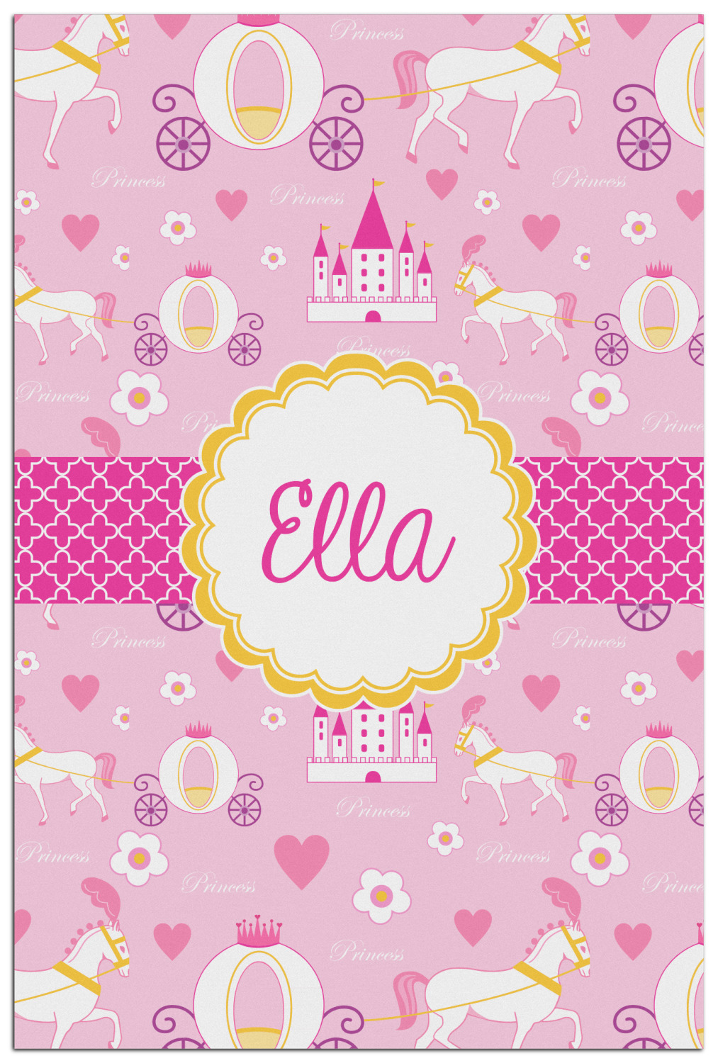 The center piece of the design is a yellow scalloped label, the perfect place for the name of a princess.