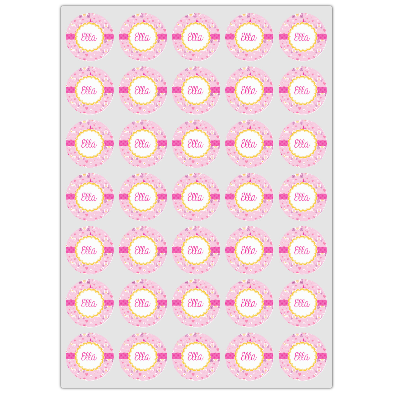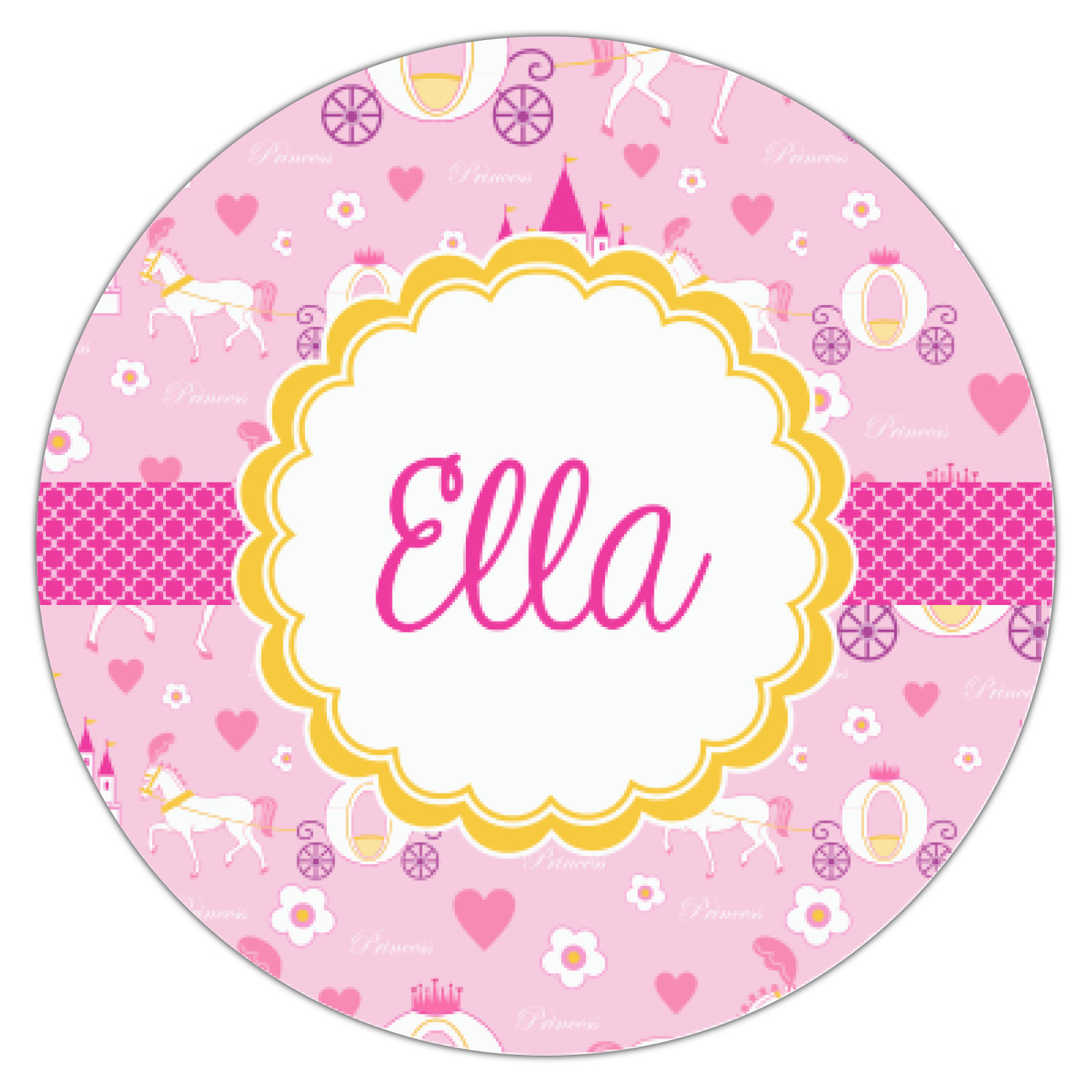 The center piece of the design is a yellow scalloped label, the perfect place for the name of a princess.
