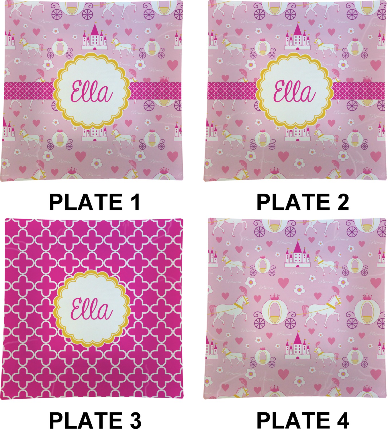 The center piece of the design is a yellow scalloped label, the perfect place for the name of a princess.