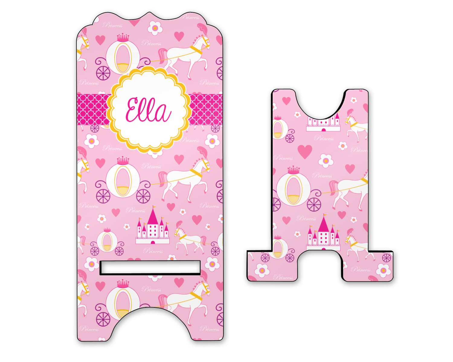 The center piece of the design is a yellow scalloped label, the perfect place for the name of a princess.