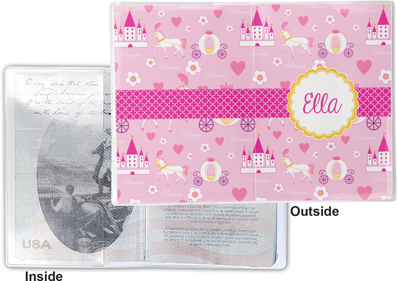 This cover is made of a sturdy clear vinyl with a personalized vinyl insert inside. There is a large and a small pocket on either side to hold the covers of your passport easily and firmly. The passport holder is approximately 7.5" x 5.25", the perfect size to snugly fit your passport. This slim cover is the perfect way to protect your passport without being one more bulky item you have to carry.