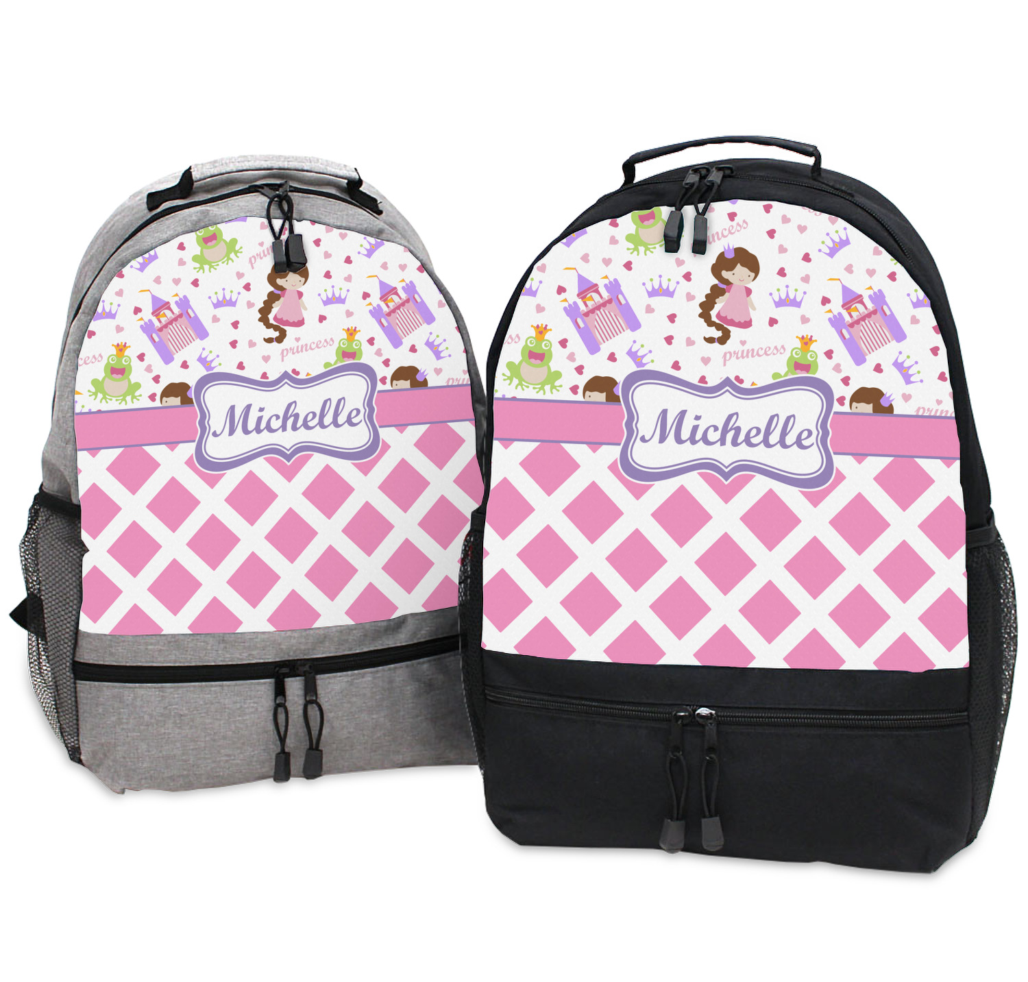 The little princess, dressed in various shades of pink, is wearing a coordinating purple crown and hair tie. A wide pink band trimmed in purple pull the pattern together and help to showcase the personalized princess in a circle label.