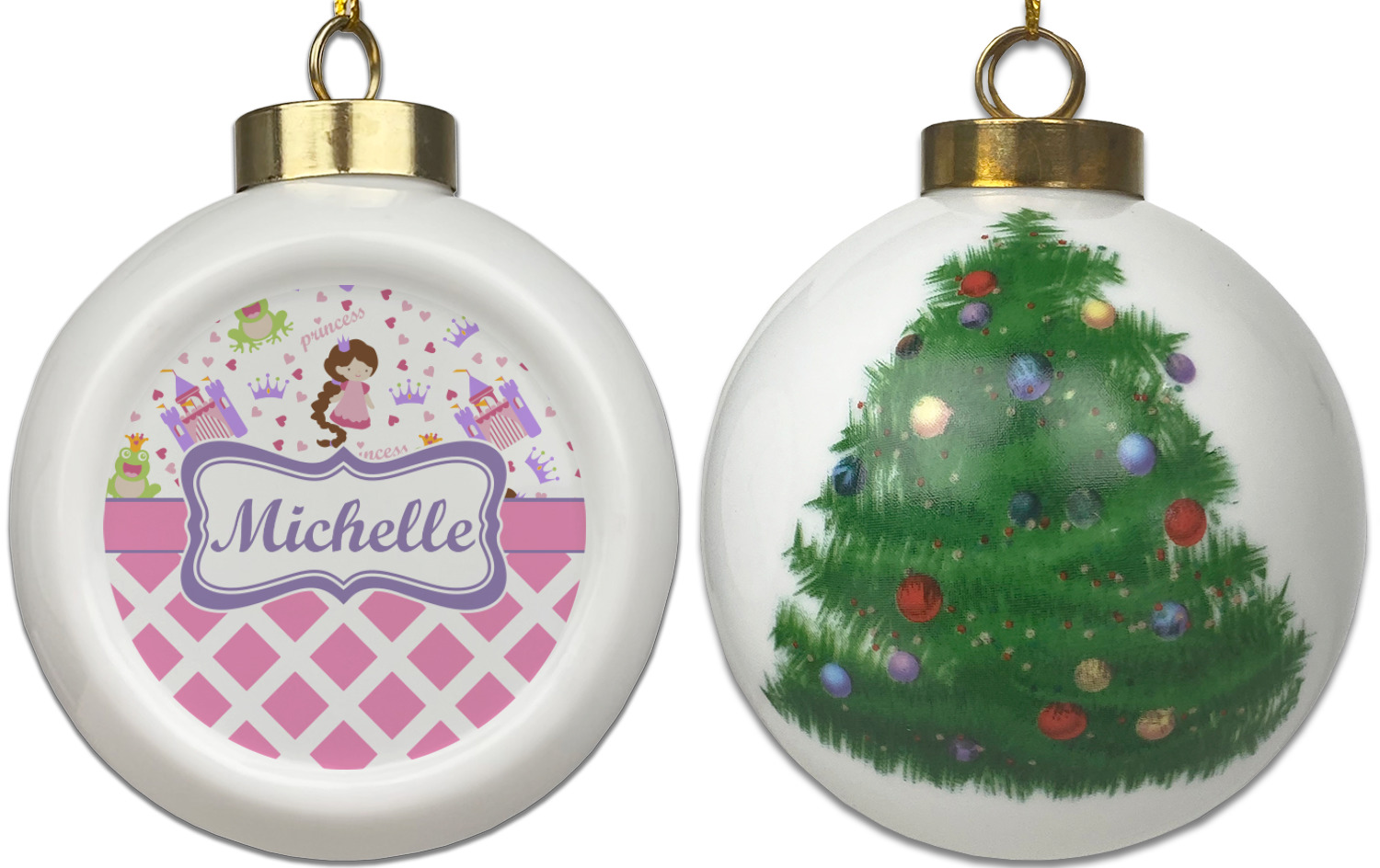 Our Christmas ornaments are a unique ceramic ball shape with a twist as it has a flat face to display your custom design! Select from one of our two design types - Christmas Tree or Poinsettia Garland - to adorn the curved back of your personal design. Each ornament measures 3H x 2.5W x 2D accompanied with a gold string accent for finishing touches to hang on your beautiful Christmas tree!