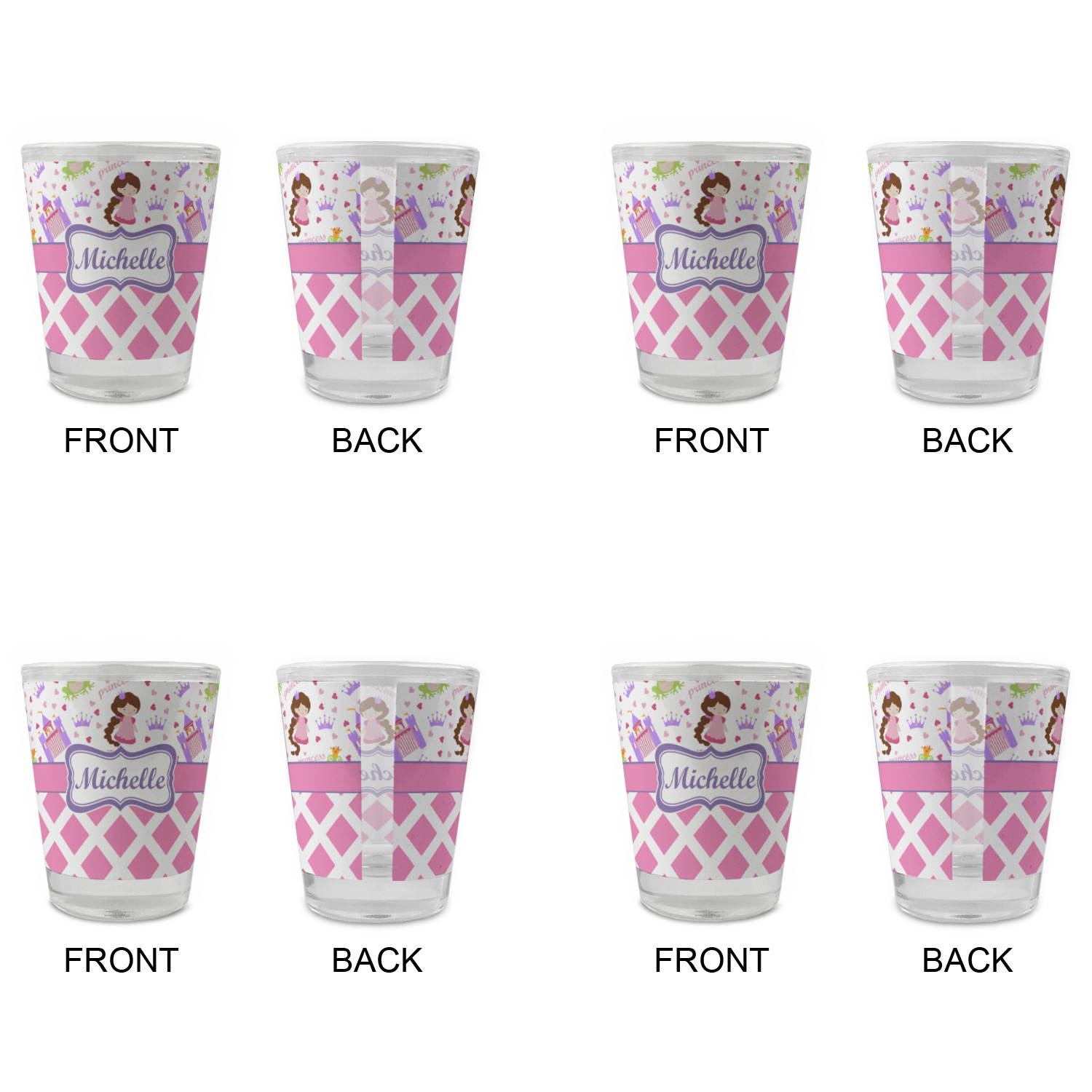 Made with frosted glass, these shot glasses are printed in full color with the design of your choice. They are a standard 1.5oz shot glass and are 2.4" tall. The print is wrapped around the shot glass in a full wrap and boldly displays your customization.