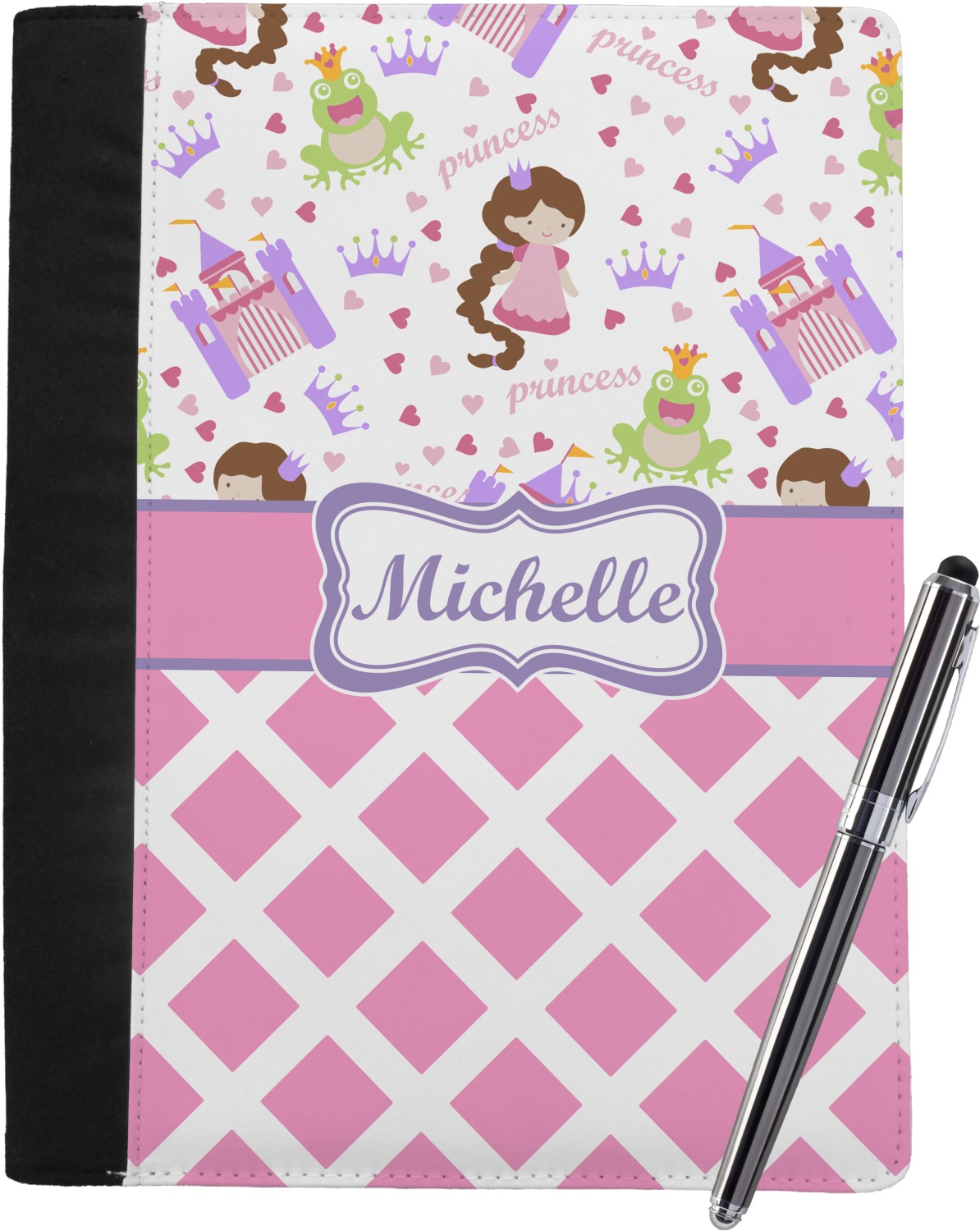 These personalized padfolios are made from a black, polyester microfiber and features a standard, 50-page notepad. However, these black padfolios can accommodate a pad with up to 100 pages. This model also features a slot pocket for any loose sheets of paper, small pockets for business cards, and an elastic band to secure a pen. We print your personalization across the front of this notepad portfolio in bright, vibrant color. These padfolios come in 2 sizes, Medium - approximately 10.25" x 8" for 5" x 8" paper and Large - approximately 12.5" x 8.5" for 8.5" x 11" paper.
