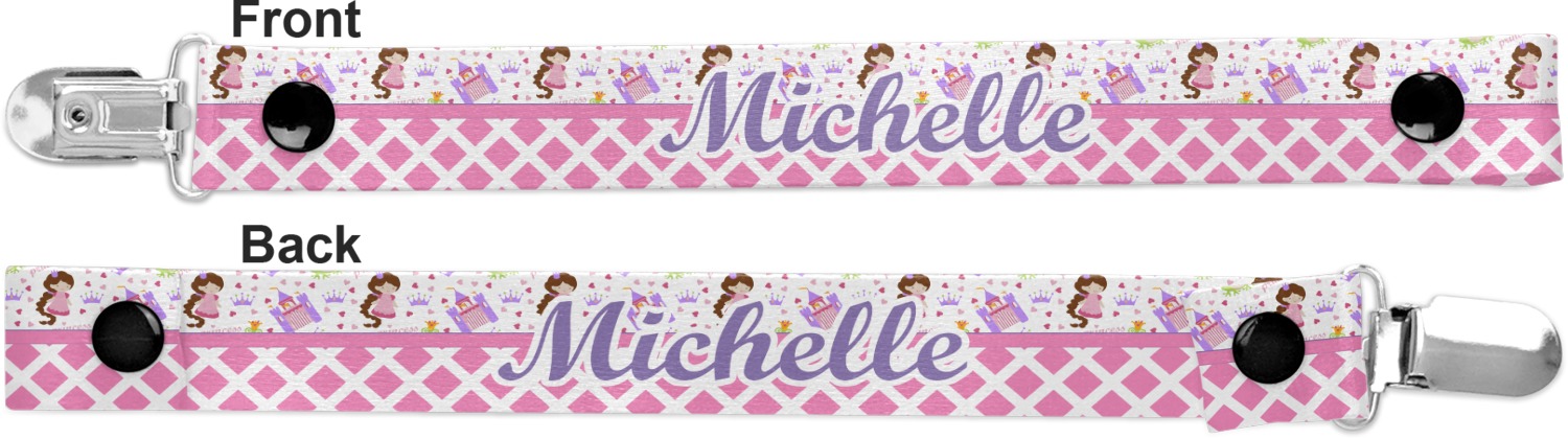 This personalized pacifier clip is the ideal size and measures at approximately 7.5 inches in length, when either end is snapped closed. On one end, you'll find a snap button. This button of your baby's pacifier holder is what can be attached to their pacifier to hold is securely in place. Simply open the snap, slip it through the pacifier opening, and snap it back into place. On the opposite end of this baby pacifier holder, you'll find a metal clip that can secure to a baby's collar or sleeve. This clip ensures that the strap stays in place, and that your baby's pacifier is always on hand.