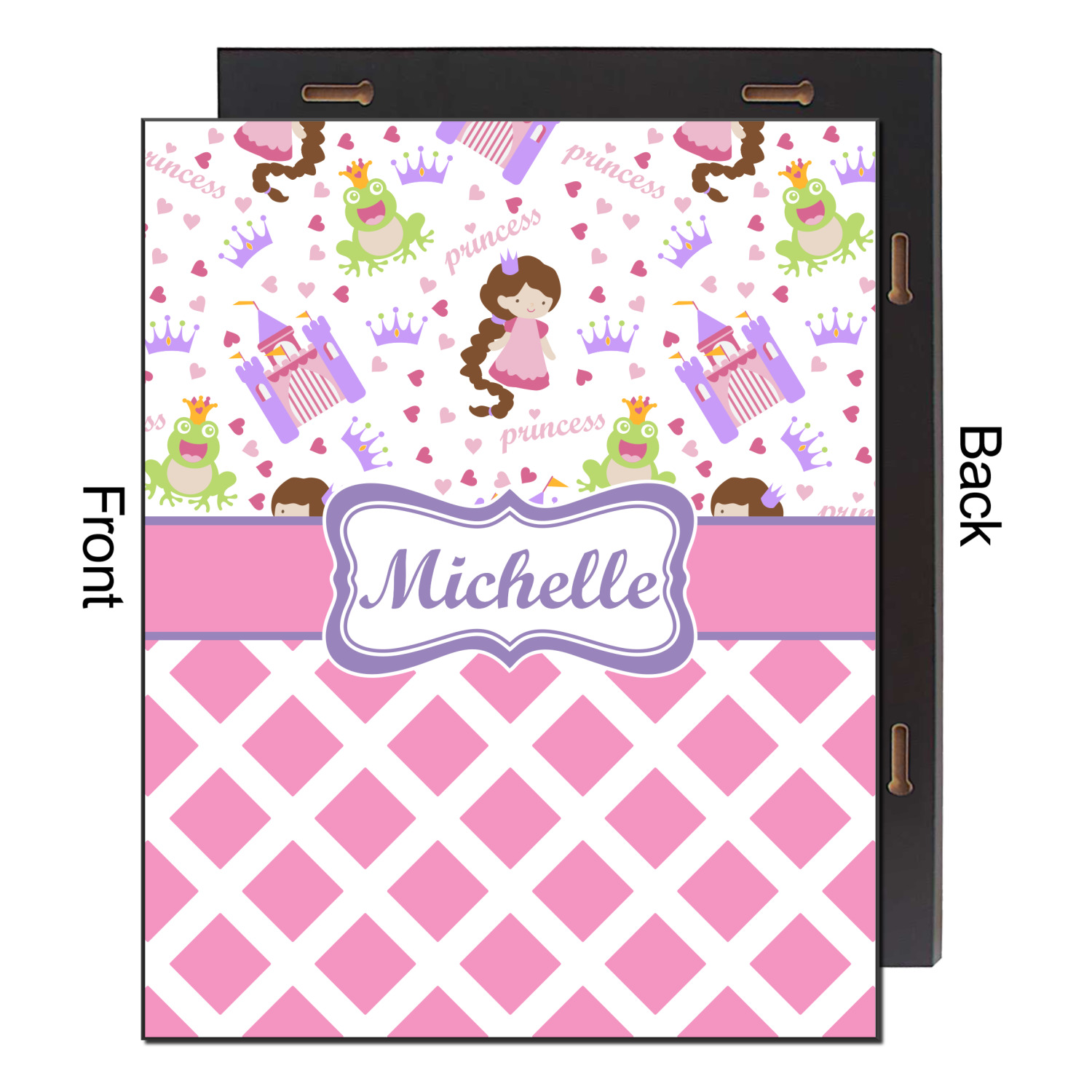 The little princess, dressed in various shades of pink, is wearing a coordinating purple crown and hair tie. A wide pink band trimmed in purple pull the pattern together and help to showcase the personalized princess in a circle label.