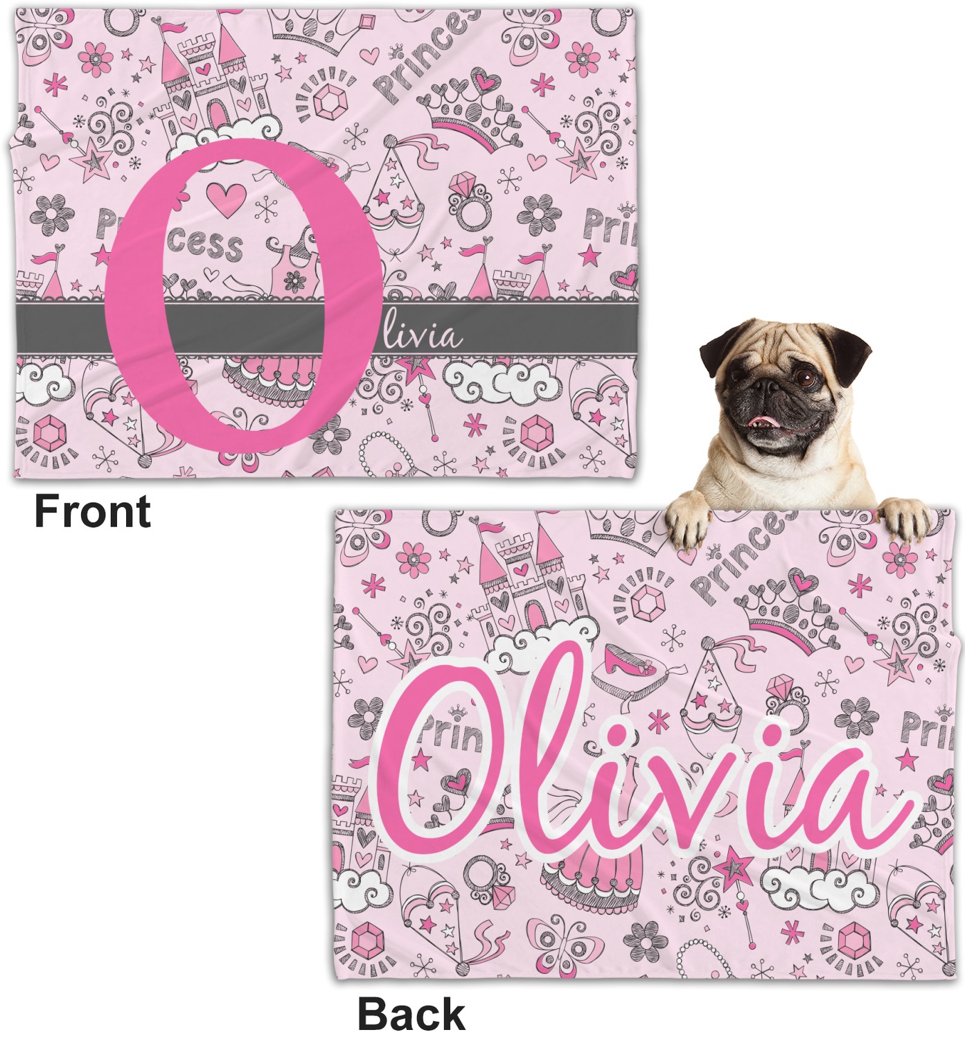 These dog blankets are crafted from a gentle, soft-to-the-touch, minky material. We print your customizations, either matching or differing, on both the top and underside of the blanket. These personalized dog blankets are available in two sizes: regular and large. Our regular size, at 40" x 30", accommodates small and some medium size dogs. At 60" x 50", our large dog blanket is a better fit for bigger breeds. Though specialized for dogs, these blankets still make a thoughtful gift for your favorite feline, or any other pet in mind!