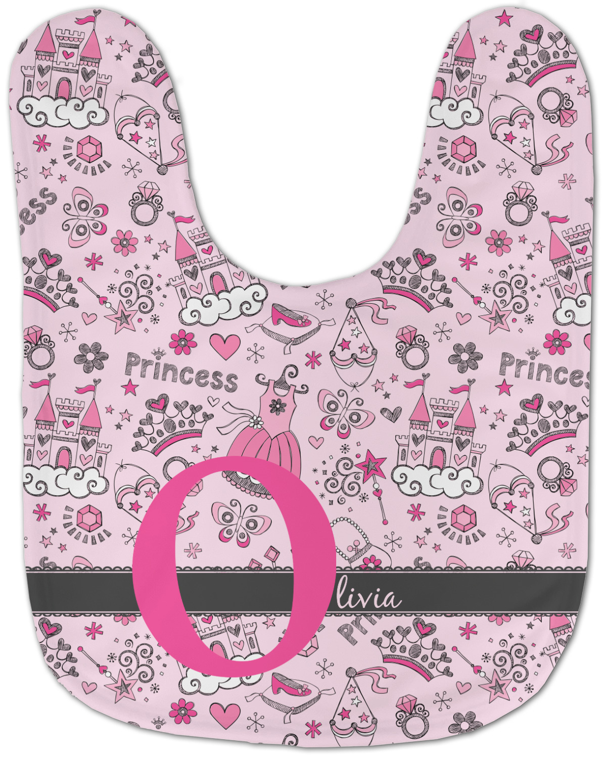 We chose to personalized the design with our Large Initial and Text on Ribbon Style. We chose the scalloped ribbon, and dark pink and dark grey for our colors. We have many princesses & women in our system - you can choose any one of those and customize to suit your personal style.