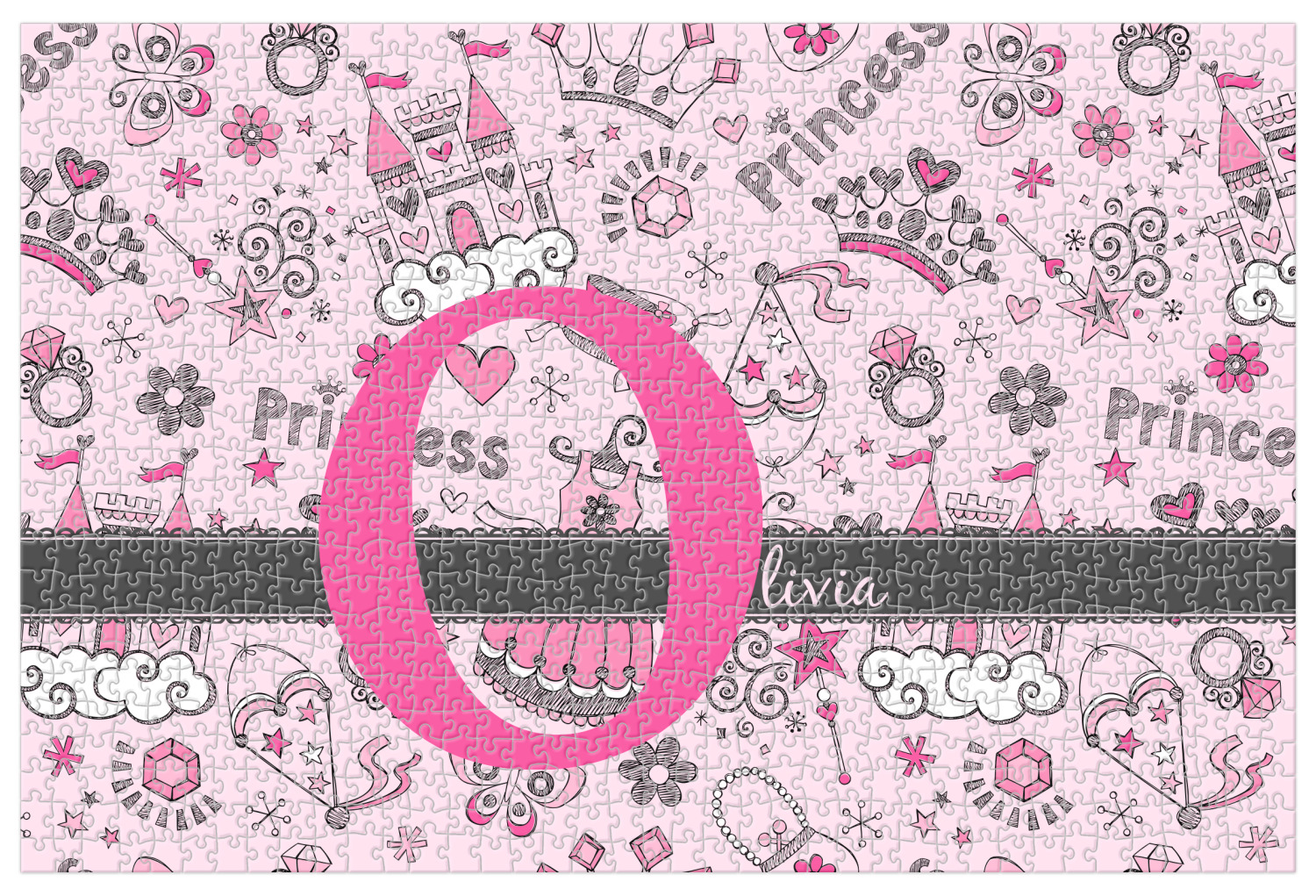 We chose to personalized the design with our Large Initial and Text on Ribbon Style. We chose the scalloped ribbon, and dark pink and dark grey for our colors. We have many princesses & women in our system - you can choose any one of those and customize to suit your personal style.