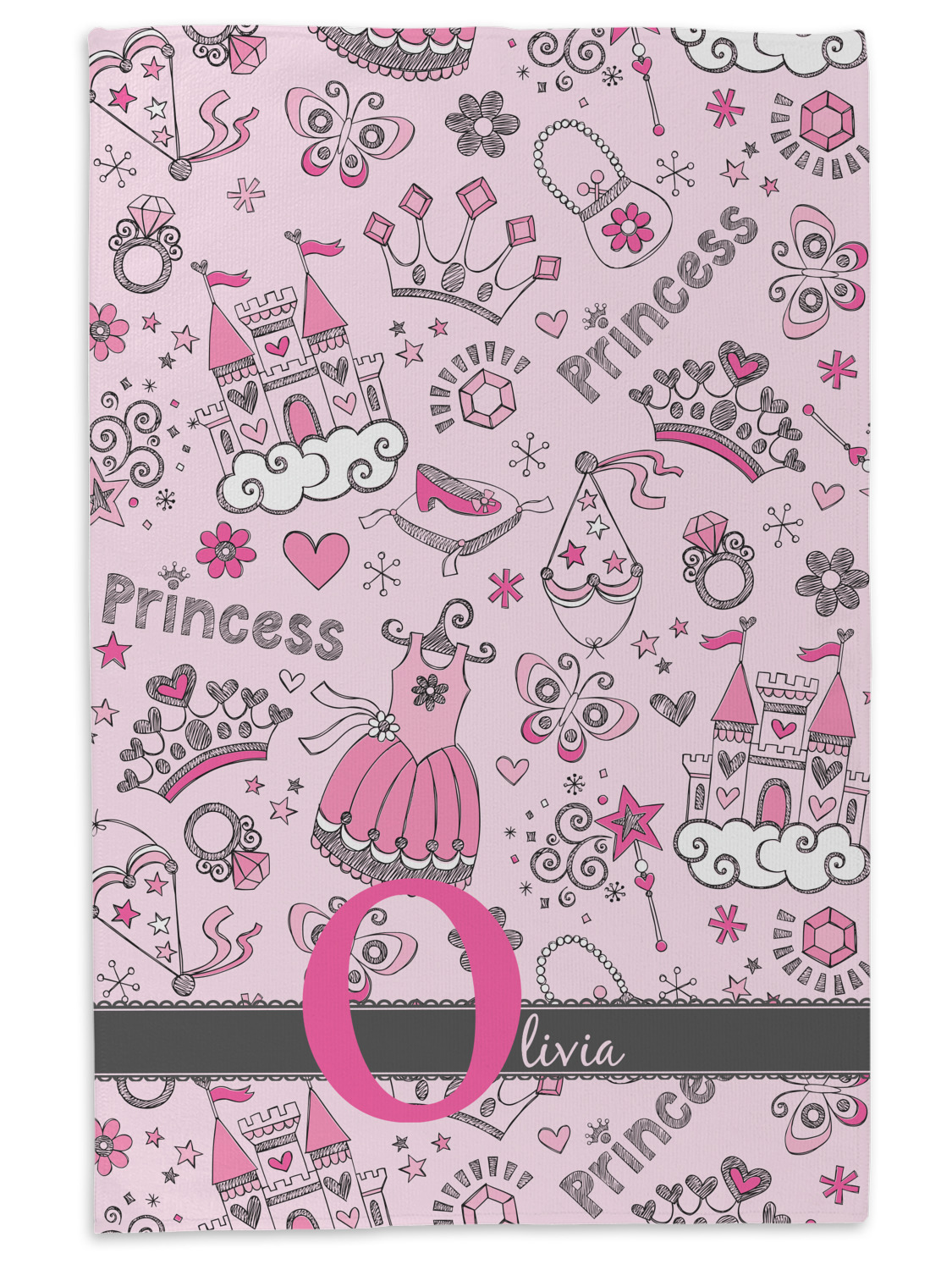 We chose to personalized the design with our Large Initial and Text on Ribbon Style. We chose the scalloped ribbon, and dark pink and dark grey for our colors. We have many princesses & women in our system - you can choose any one of those and customize to suit your personal style.