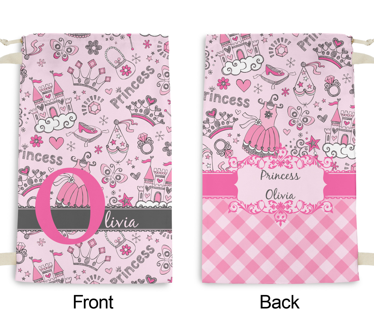 We chose to personalized the design with our Large Initial and Text on Ribbon Style. We chose the scalloped ribbon, and dark pink and dark grey for our colors. We have many princesses & women in our system - you can choose any one of those and customize to suit your personal style.