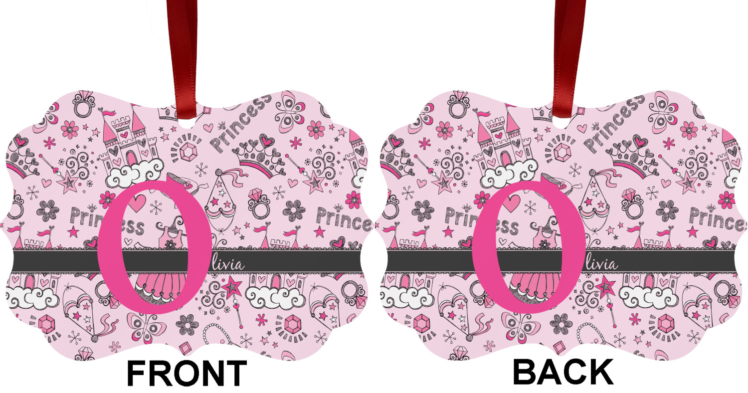 We chose to personalized the design with our Large Initial and Text on Ribbon Style. We chose the scalloped ribbon, and dark pink and dark grey for our colors. We have many princesses & women in our system - you can choose any one of those and customize to suit your personal style.