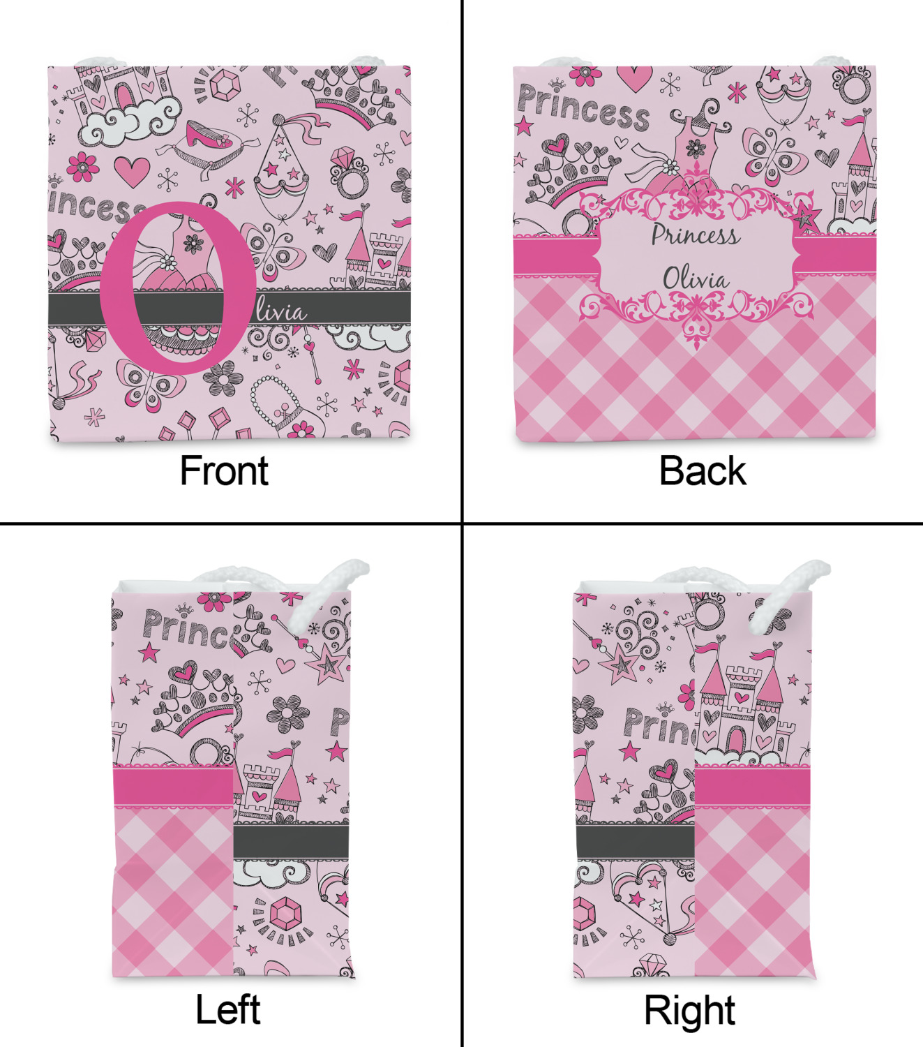 We chose to personalized the design with our Large Initial and Text on Ribbon Style. We chose the scalloped ribbon, and dark pink and dark grey for our colors. We have many princesses & women in our system - you can choose any one of those and customize to suit your personal style.