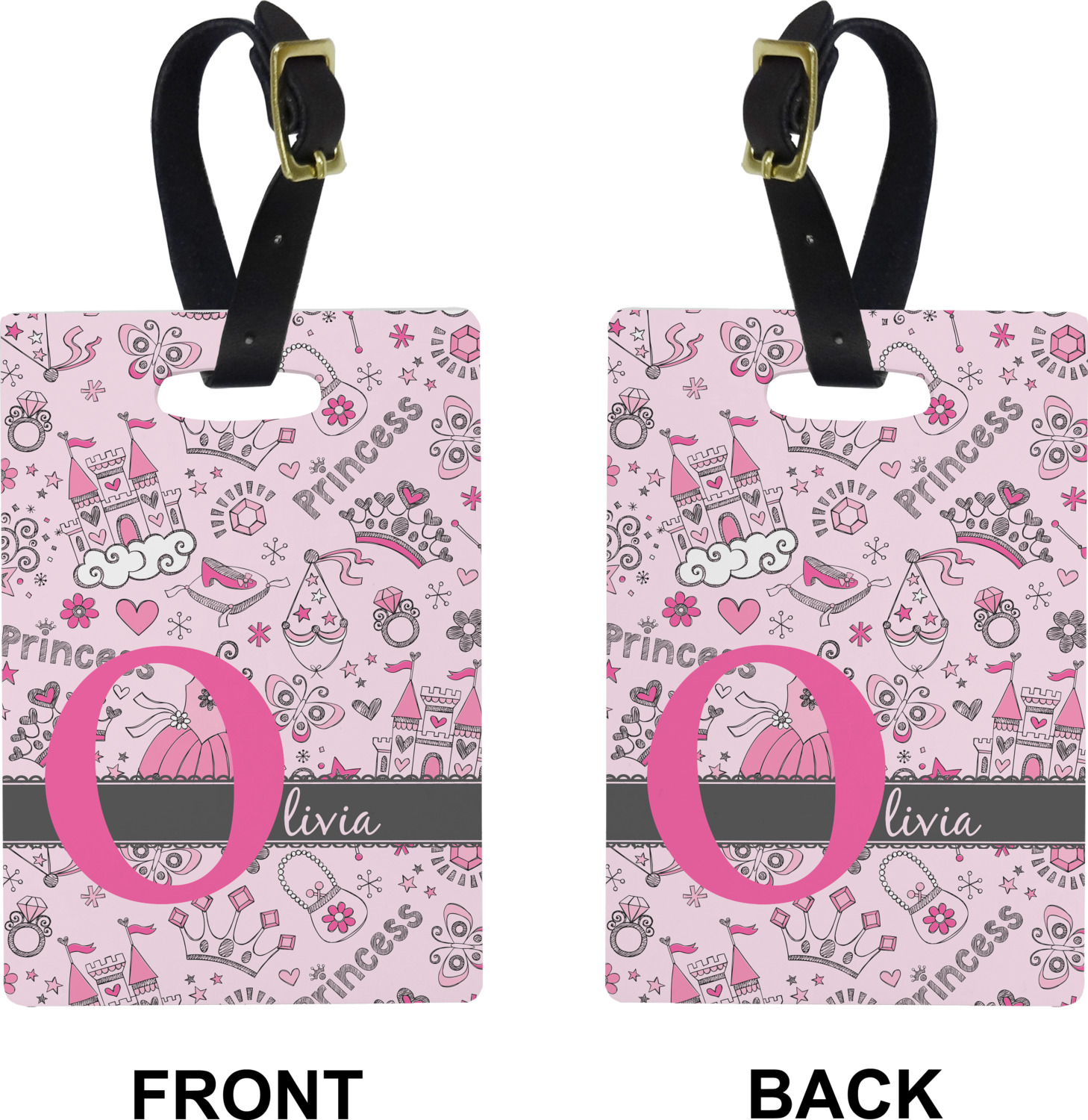 These cute luggage tags are made of a fiber-reinforced, UV-resistant plastic, making them waterproof and durable enough for both everyday use and the rugged adventures of any traveler! A leather strap with holes and a buckle is included with your purchase and can be used to attach your custom luggage tag to any suitcase, backpack, or duffel bag. You can design these travel tags as you wish; your customization will be displayed across the front, while the back will show as little or as much personal information as you want.