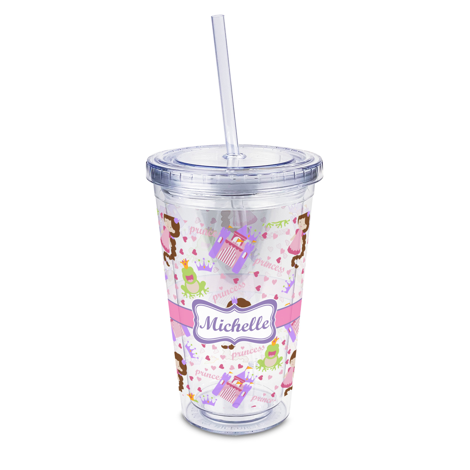 This princess themed print full of little girl pink and purple makes the statement that your little girl is The Princess. This print features every princess's dream full of castles, crowns, her very own prince frog to kiss, and lots of hearts fluttering about.