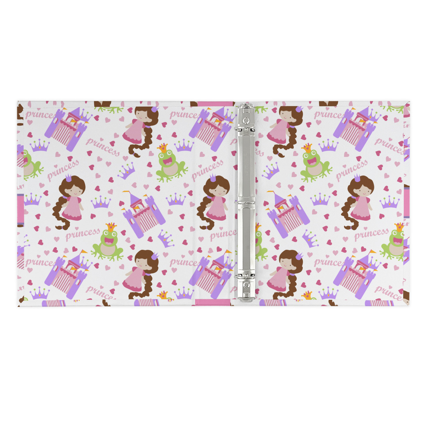 This princess themed print full of little girl pink and purple makes the statement that your little girl is The Princess. This print features every princess's dream full of castles, crowns, her very own prince frog to kiss, and lots of hearts fluttering about.