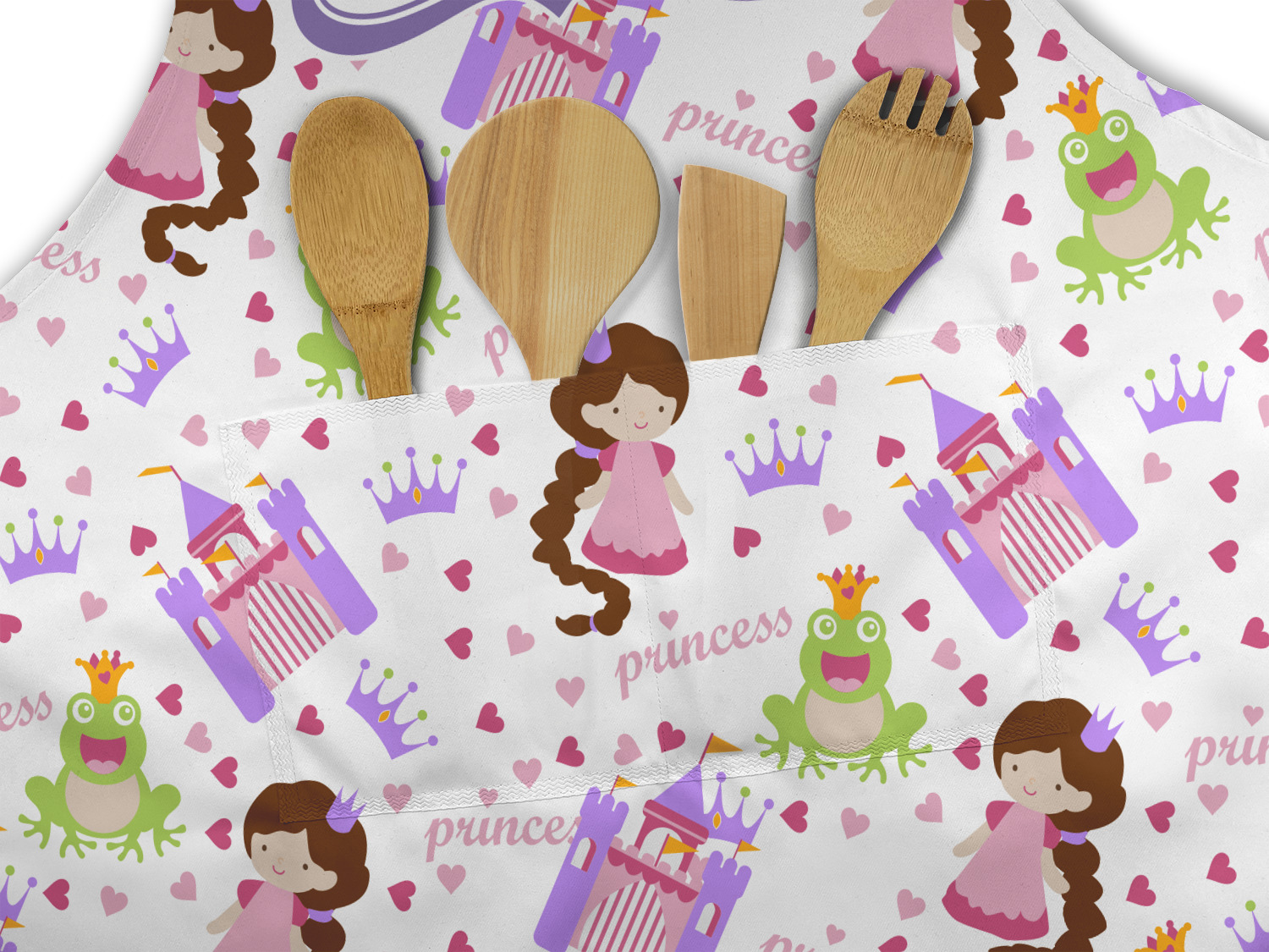 This princess themed print full of little girl pink and purple makes the statement that your little girl is The Princess. This print features every princess's dream full of castles, crowns, her very own prince frog to kiss, and lots of hearts fluttering about.