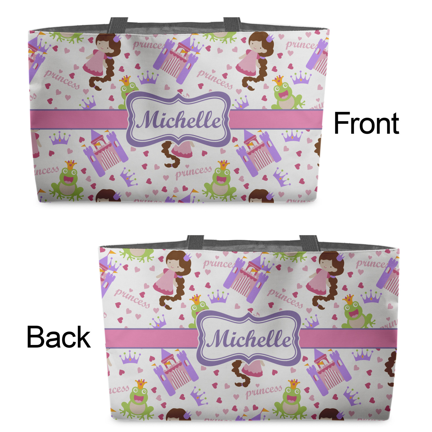 These beach totes are handmade here in the USA. Fabric is printed with your design. The tote is then sewn from the fabric pieces, lining and handles added.