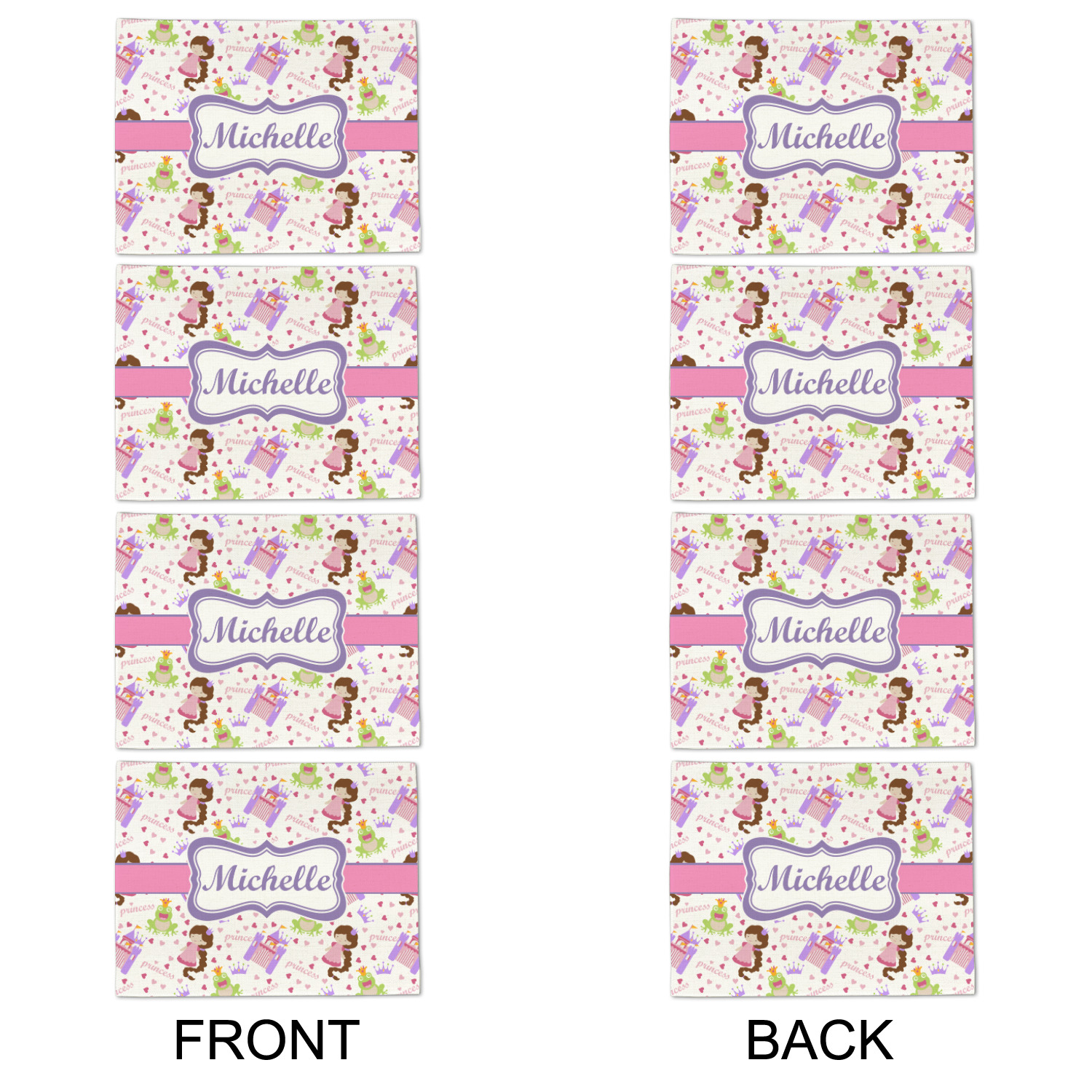 This princess themed print full of little girl pink and purple makes the statement that your little girl is The Princess. This print features every princess's dream full of castles, crowns, her very own prince frog to kiss, and lots of hearts fluttering about.