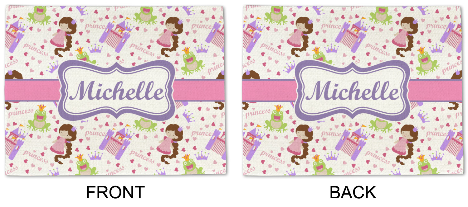 This princess themed print full of little girl pink and purple makes the statement that your little girl is The Princess. This print features every princess's dream full of castles, crowns, her very own prince frog to kiss, and lots of hearts fluttering about.