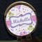 The center focal point of the design is a lovely pink band, trimmed in coordinating purple with a large label for personalization.