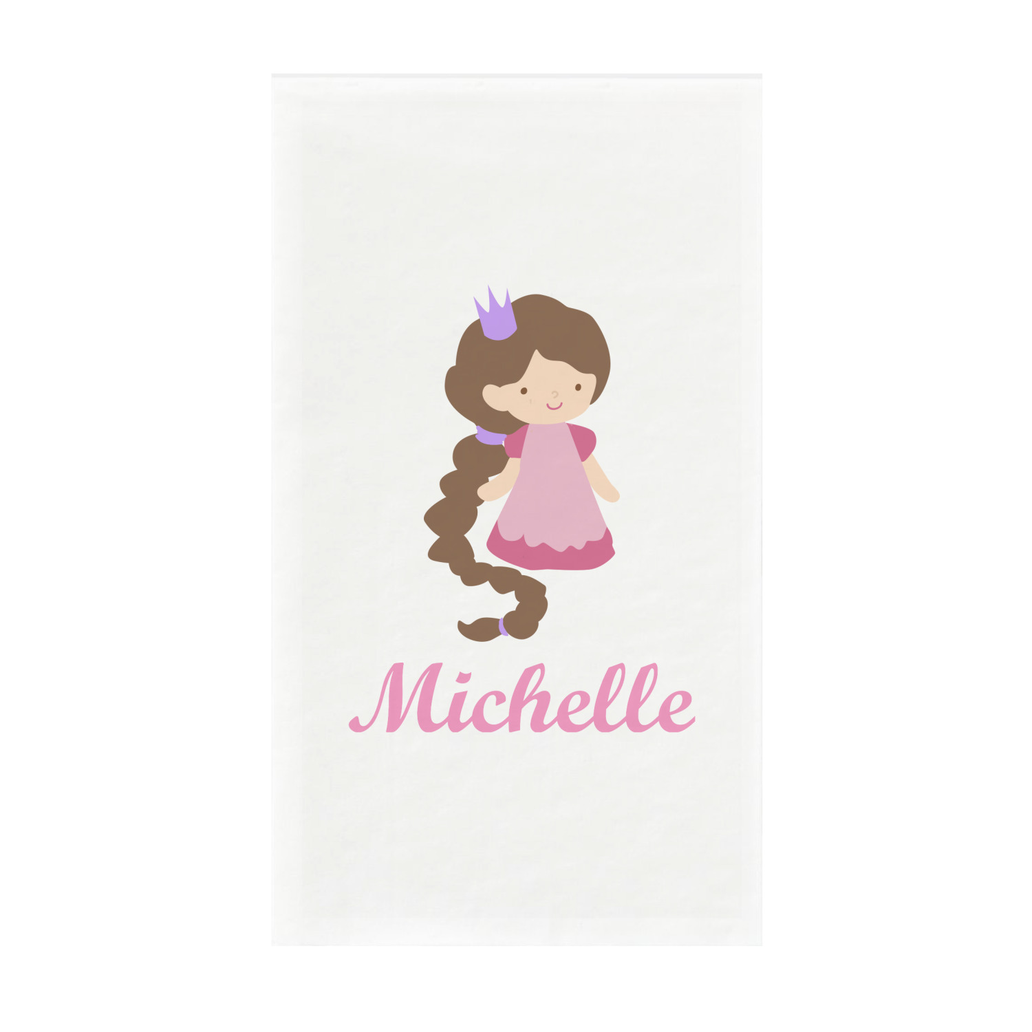 This princess themed print full of little girl pink and purple makes the statement that your little girl is The Princess. This print features every princess's dream full of castles, crowns, her very own prince frog to kiss, and lots of hearts fluttering about.