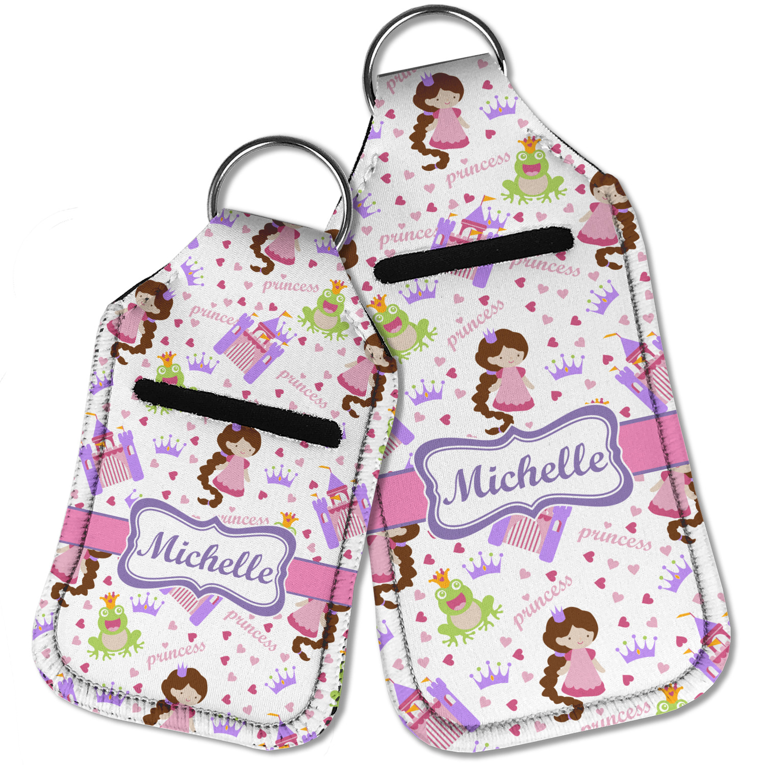 Each hand sanitizer holder comes with its own empty travel-sized, refillable hand sanitizer sure to fit snug in your customized sanitizer case! Our hand sanitizer cases are a durable, yet soft neoprene material sure to last any daily activities or travel agenda. Customize and personalize a hand sanitizer bottle holder with one of our two sizes - small (4.25" x 2.25") or large (5.5" x 2.5"). Each travel sanitizer holder comes with a keyring for attachment on bags, keys, or more!