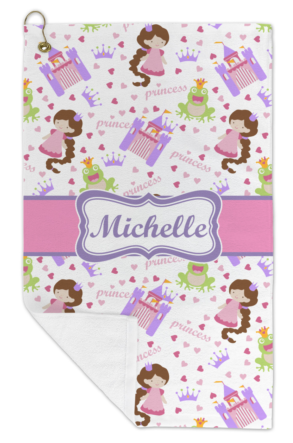 This princess themed print full of little girl pink and purple makes the statement that your little girl is The Princess. This print features every princess's dream full of castles, crowns, her very own prince frog to kiss, and lots of hearts fluttering about.
