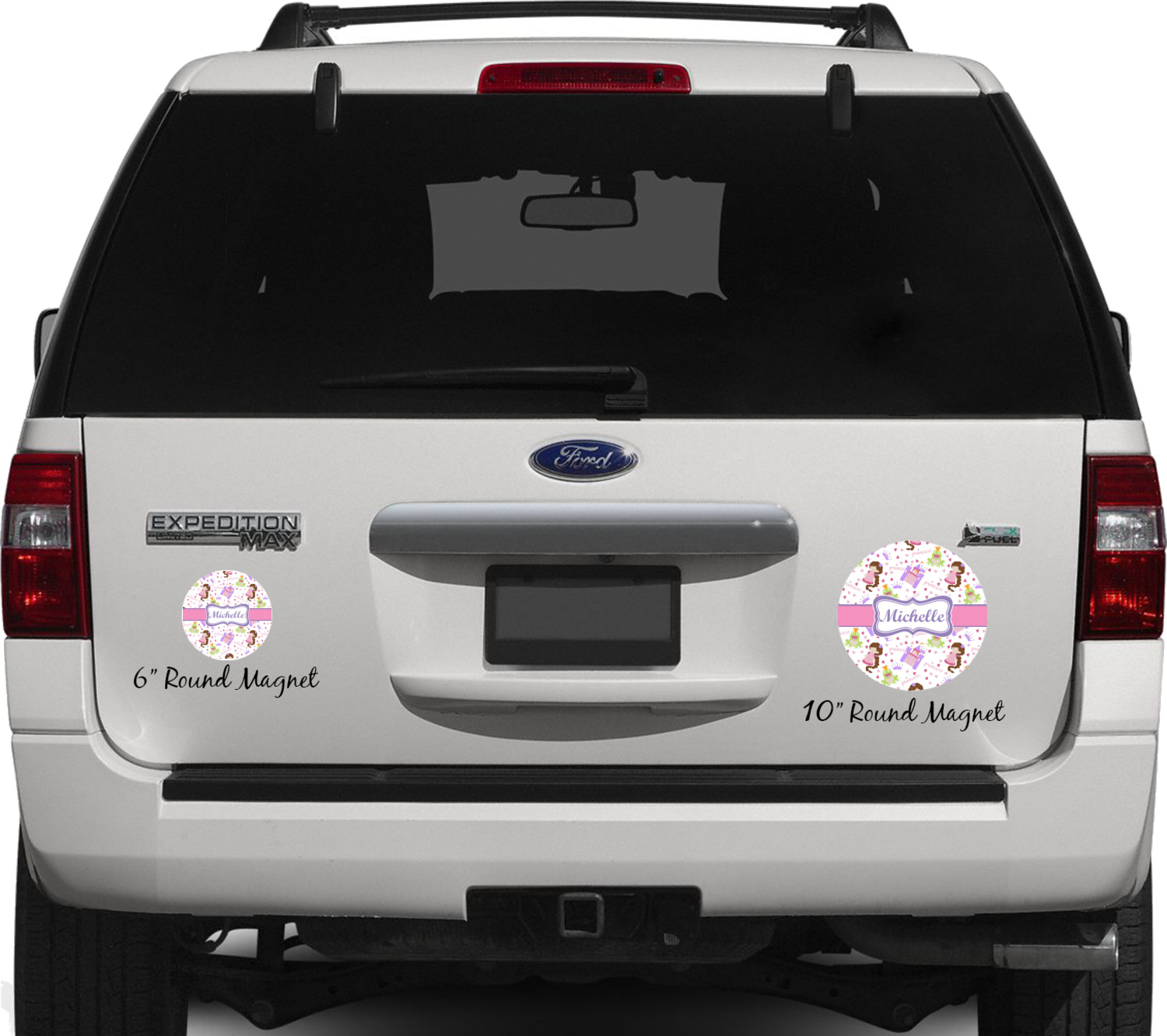 Your personalized car magnets are available for purchase in two shapes and two sizes. We carry round and square editions; each shape can either be 6 by 6 inches, or 10 by 10 inches, depending on your needs. Both versions are 1 millimeter thick, which is considered, within the industry, as the ideal thickness for automobile magnets. The magnetic car decals will adhere to any smooth, metal surface of your cars body, such as the trunk door or a side panel. However, please note that some vehicles are constructed from fiberglass bodies, which prevents the adhesion of anything magnetic. We advise that you test your vehicle before purchasing these magnets.