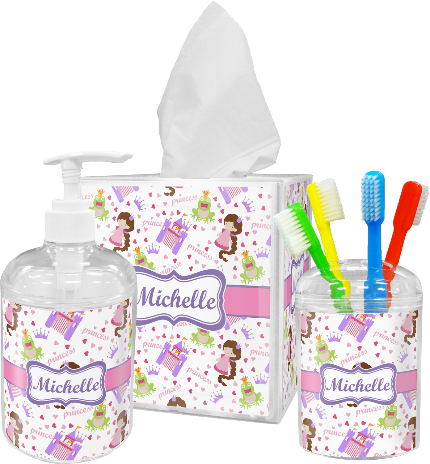 This princess themed print full of little girl pink and purple makes the statement that your little girl is The Princess. This print features every princess's dream full of castles, crowns, her very own prince frog to kiss, and lots of hearts fluttering about.
