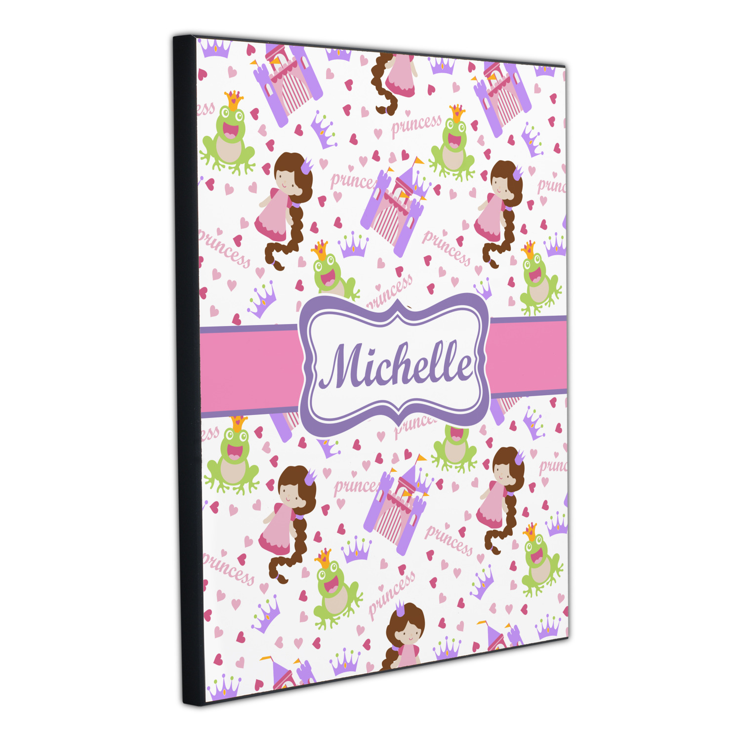 This princess themed print full of little girl pink and purple makes the statement that your little girl is The Princess. This print features every princess's dream full of castles, crowns, her very own prince frog to kiss, and lots of hearts fluttering about.