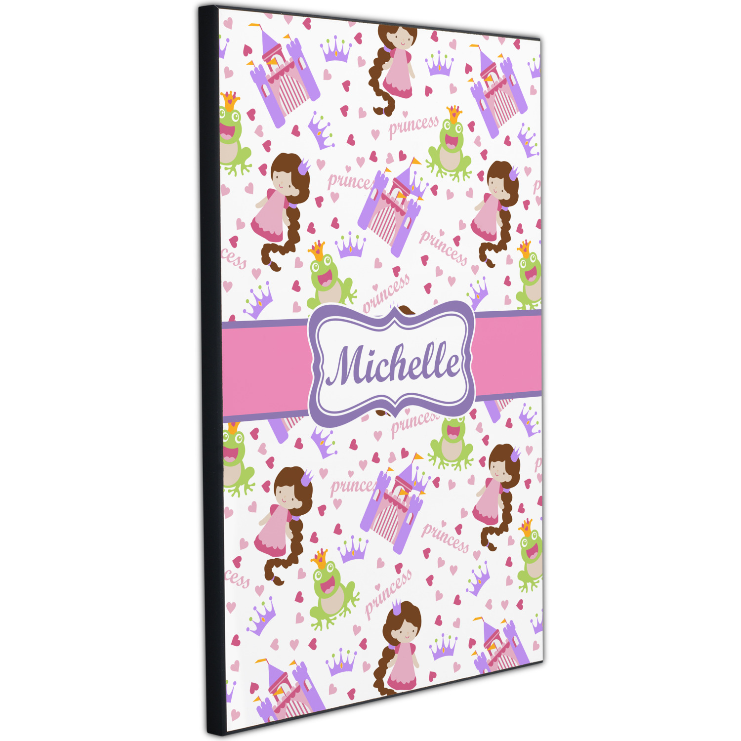 This princess themed print full of little girl pink and purple makes the statement that your little girl is The Princess. This print features every princess's dream full of castles, crowns, her very own prince frog to kiss, and lots of hearts fluttering about.