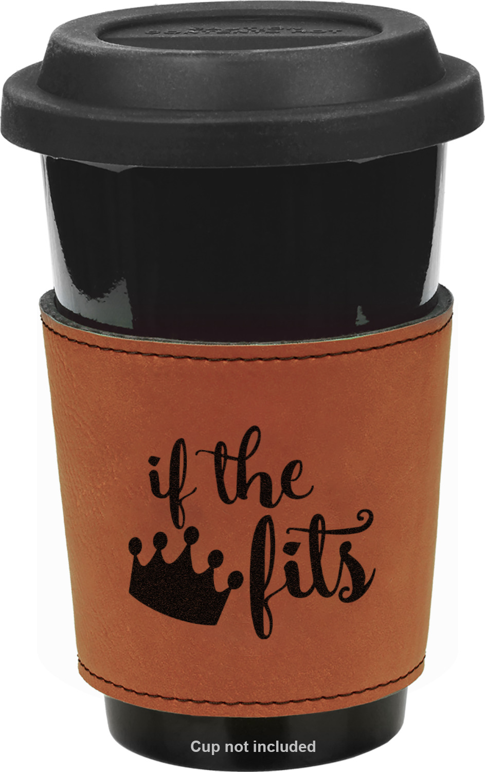 This cup sleeve is made from a suave, cognac-brown leatherette and finished with an intricate, black stitch. The interior of this can sleeve is fabricated from a thin foam material to help insulate your mug's contents. The sleeve is specifically made to suit tapered glasses or mugs, so the top's diameter is 3.5 inches, while the bottom's diameter is 2.75 inches. Your customized design will be laser engraved into the leatherette, leaving behind crisp, black imprint. With these products, we provide you with the option of engraving the front and back, or the front only.