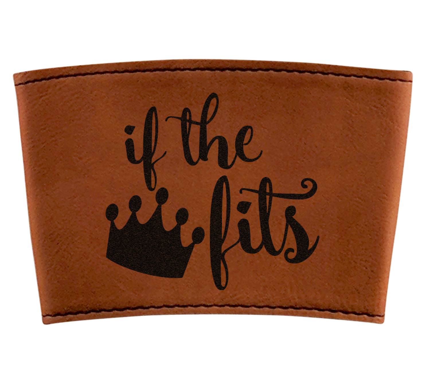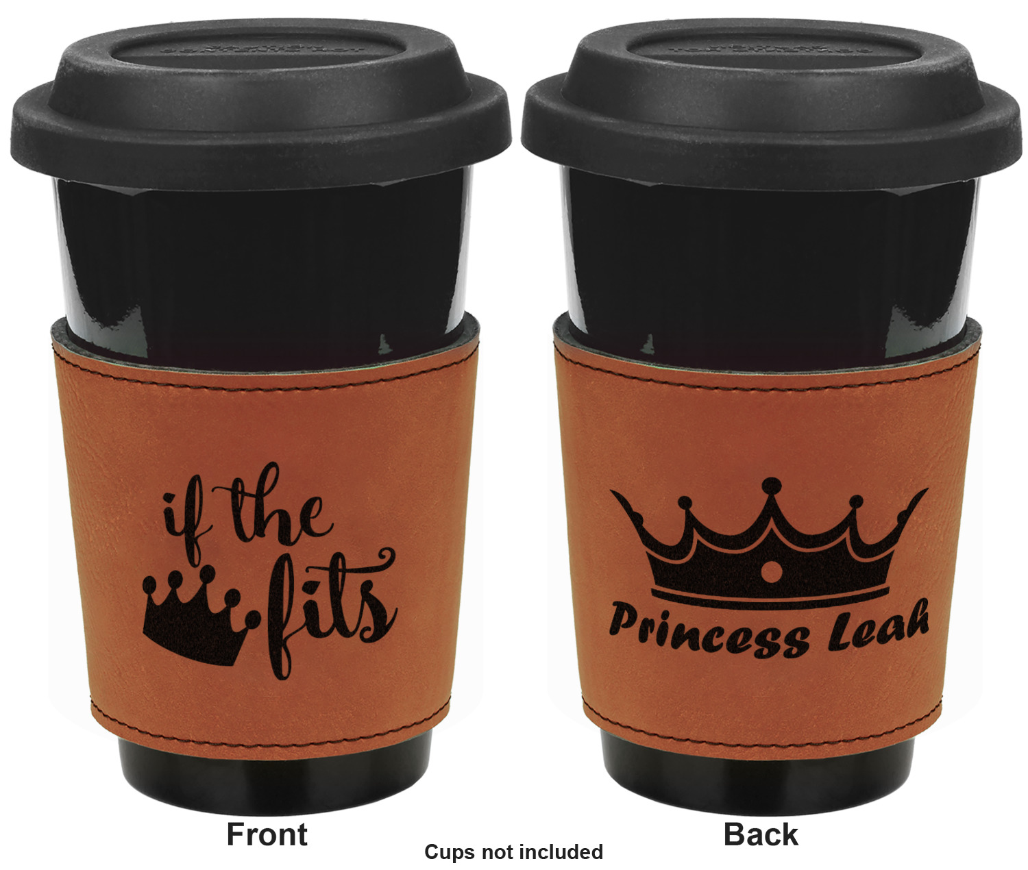 This cup sleeve is made from a suave, cognac-brown leatherette and finished with an intricate, black stitch. The interior of this can sleeve is fabricated from a thin foam material to help insulate your mug's contents. The sleeve is specifically made to suit tapered glasses or mugs, so the top's diameter is 3.5 inches, while the bottom's diameter is 2.75 inches. Your customized design will be laser engraved into the leatherette, leaving behind crisp, black imprint. With these products, we provide you with the option of engraving the front and back, or the front only.