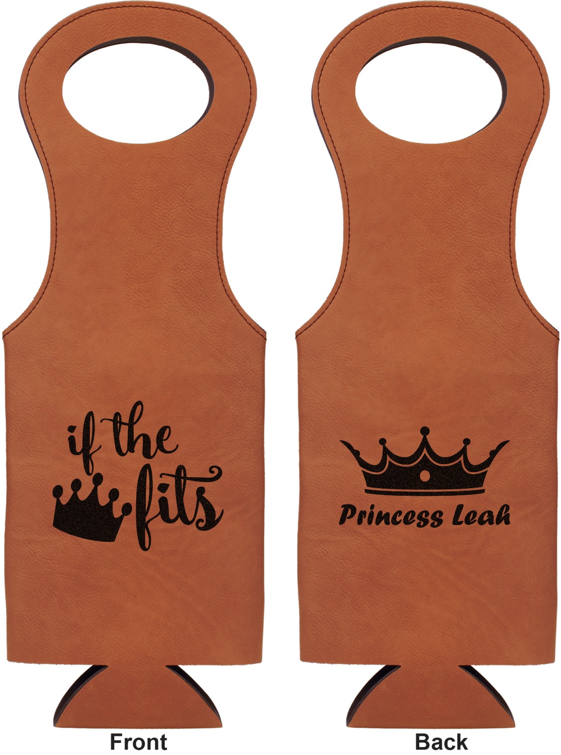 This wine carrier is made from a stunning leatherette, in a cognac-brown color. Strong, black stitching lines the sides of your wine bottle bag and provides extra durability. The interior is lined with a padded, black material to allow for a snug fit once your bottle is placed inside. At the top of this wine gift bag, you'll find two oval shaped handles that elegantly complements the rest of the bag's style. We provide you with the option of laser-engraving the front, or the front and back of your new personalized wine bag!