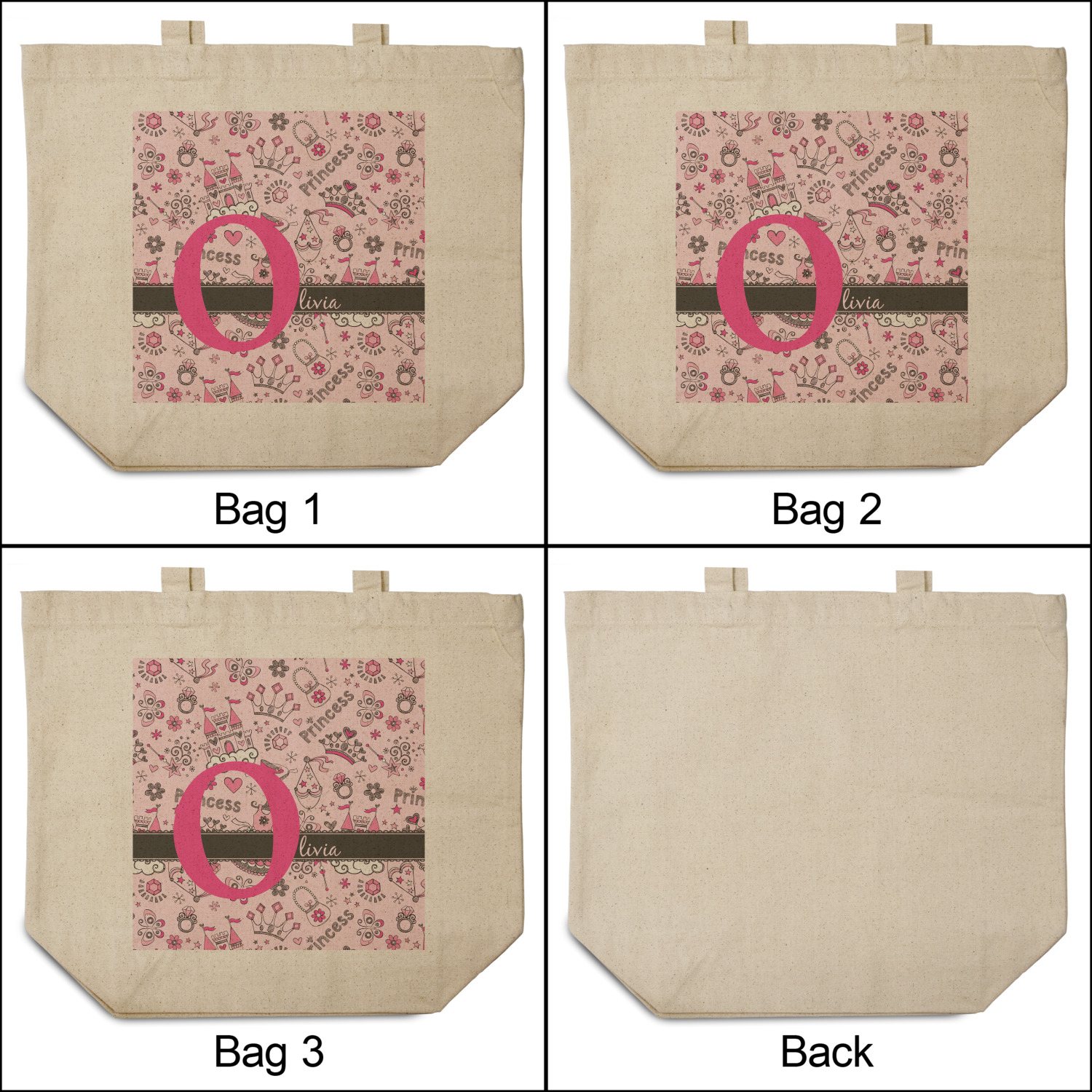 We chose to personalized the design with our Large Initial and Text on Ribbon Style. We chose the scalloped ribbon, and dark pink and dark grey for our colors. We have many princesses & women in our system - you can choose any one of those and customize to suit your personal style.