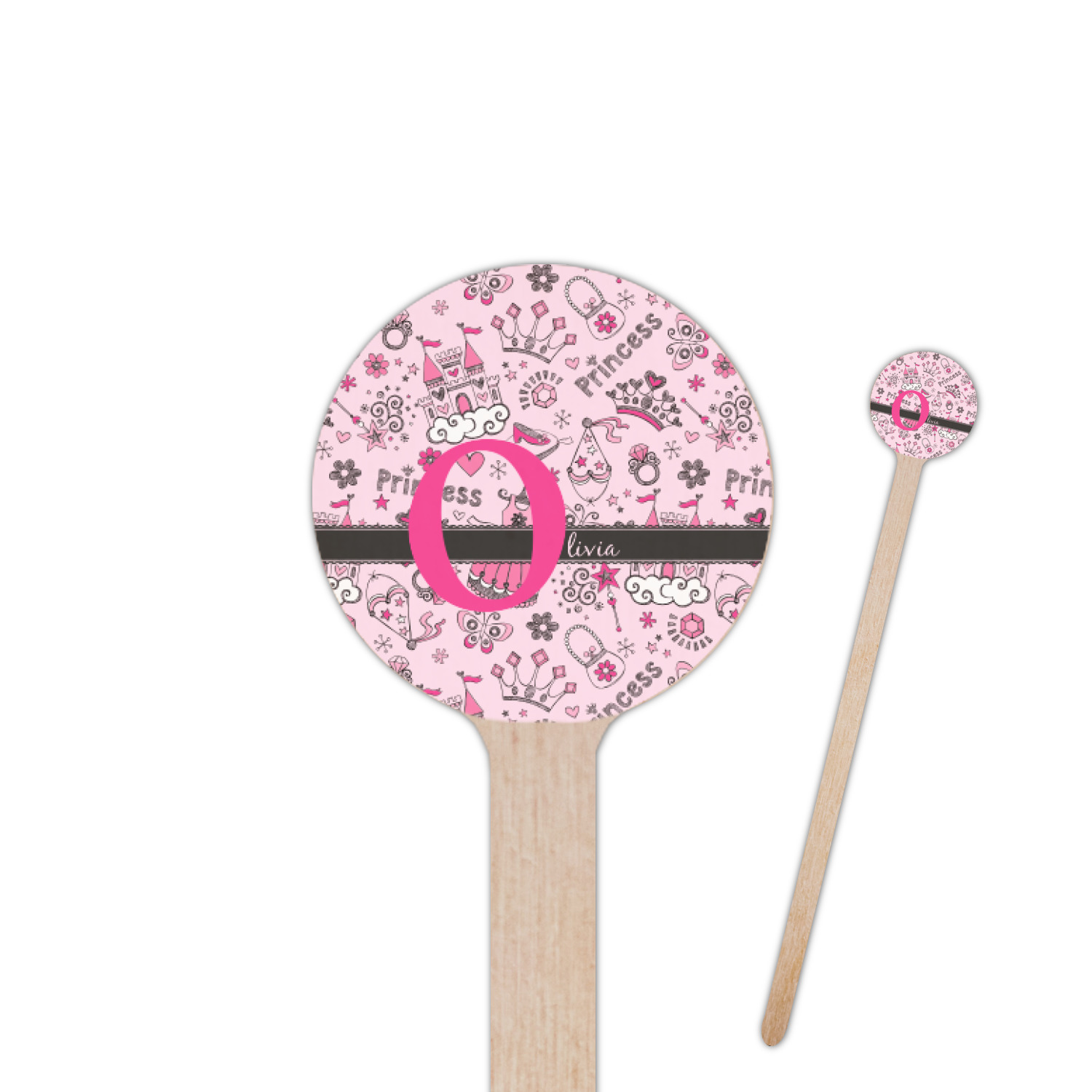 We chose to personalized the design with our Large Initial and Text on Ribbon Style. We chose the scalloped ribbon, and dark pink and dark grey for our colors. We have many princesses & women in our system - you can choose any one of those and customize to suit your personal style.