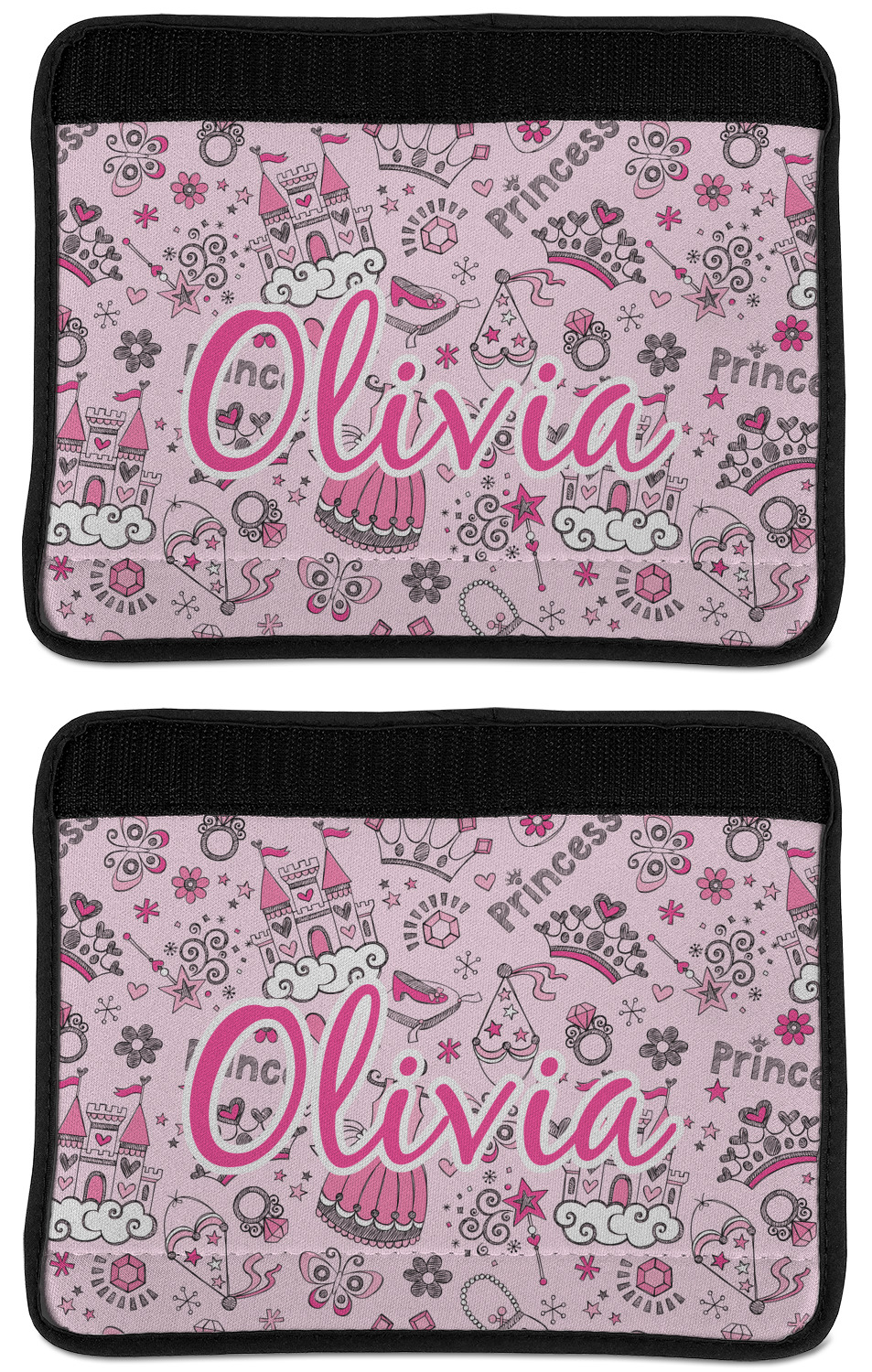 Made from neoprene, our seat belt strap covers wrap around the belt itself and have a Velcro tab for easy attachment and closure. The belt's edges are trimmed with a black polyester for a secure finish. Each cover is 9.5 by 7 inches when open and 9.5 by 2.5 inches when closed. We print your personalized design on the face of the seat belt pad.