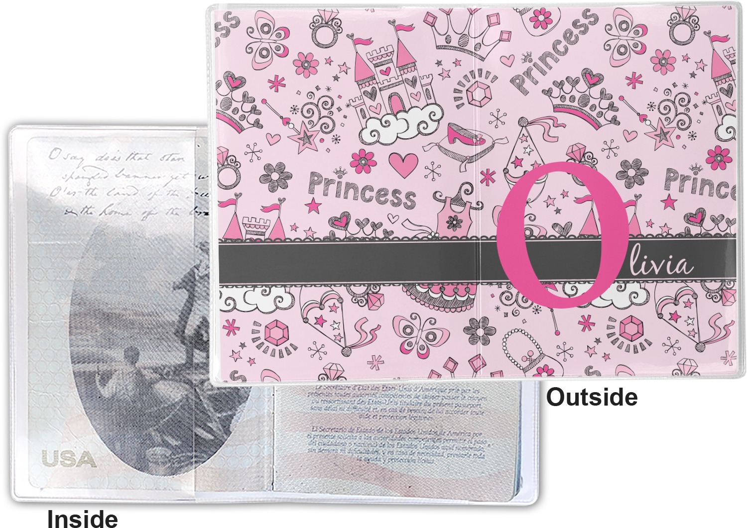This cover is made of a sturdy clear vinyl with a personalized vinyl insert inside. There is a large and a small pocket on either side to hold the covers of your passport easily and firmly. The passport holder is approximately 7.5" x 5.25", the perfect size to snugly fit your passport. This slim cover is the perfect way to protect your passport without being one more bulky item you have to carry.