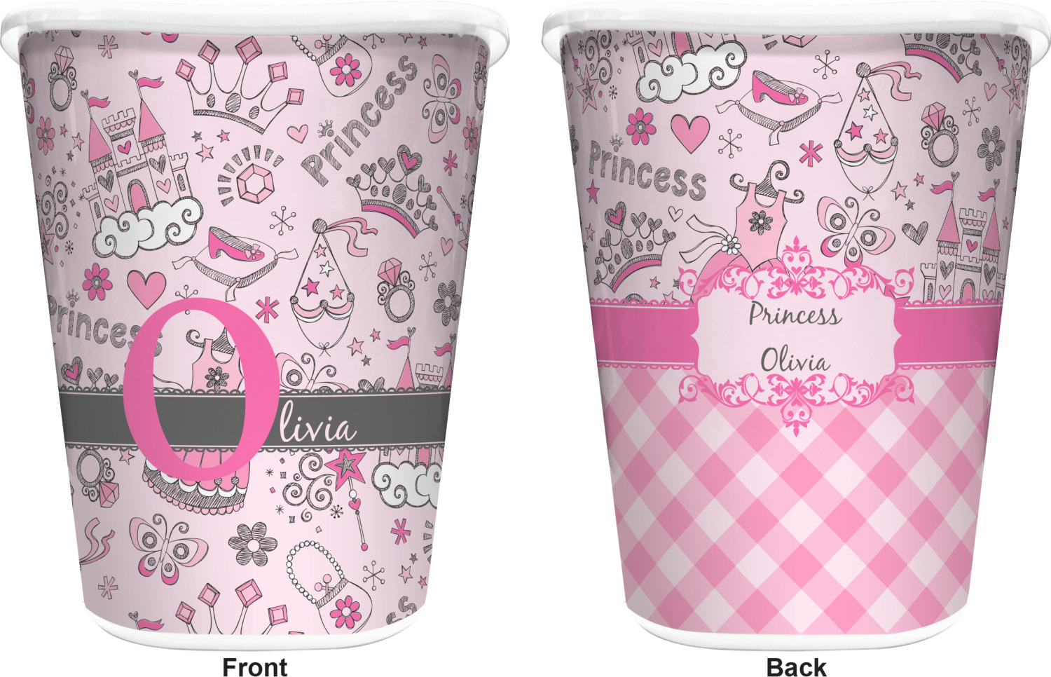You can choose to purchase these decorative wastebaskets in either a white or a black color that will show on the base and the upper rim. Your customization is printed on a high-gloss, fine-quality vinyl adhesive, and you can choose to either have this adhesive applied to one side only or to both sides. As such, this plastic wastebasket can be single-sided or double-sided, depending on your creative vision. Your customization is printed using durable inks, making the design waterproof and resistant to fading over time.