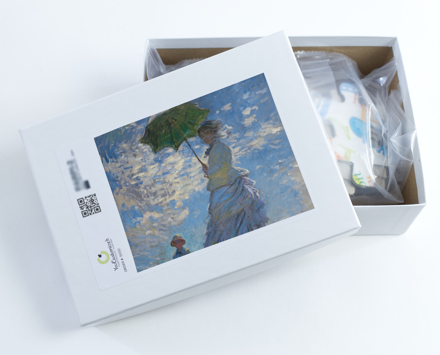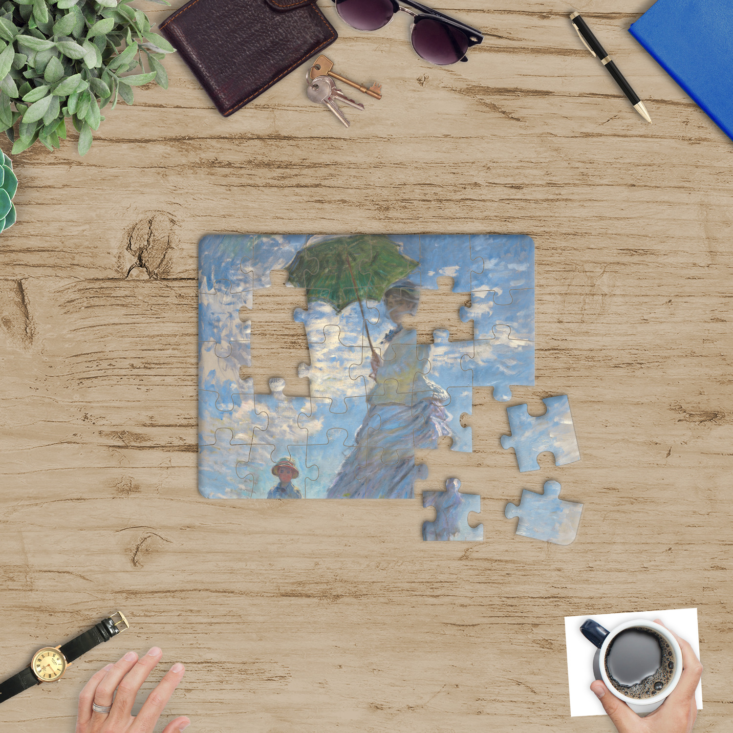 We print our puzzles on thick white chipboard in vibrant colors, then laminate the chipboard and die cut your puzzle. Your jigsaw puzzle is shipped to you in a box with the image of the puzzle on the box.