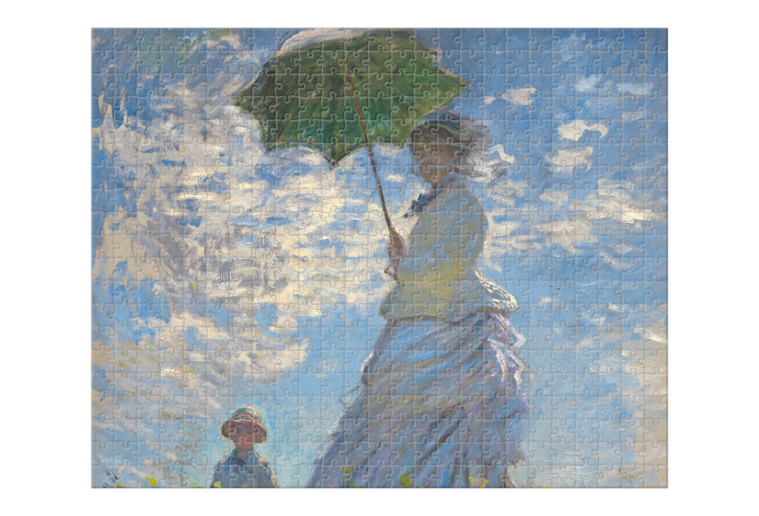 Woman With A Parasol or La Promenade depicts Monet's wife and their son. Although Monet's most obvious strength in his paintings was landscapes, it is quite evident in this painting of his family that he was quite talented at portraying the human figure as well. This painting was intended to be a more candid moment rather than a traditional portrait. In fact, Monet most likely painted this scene in one sitting, maybe even in only a few hours. Monet is quite successful in capturing this typical moment with his family.