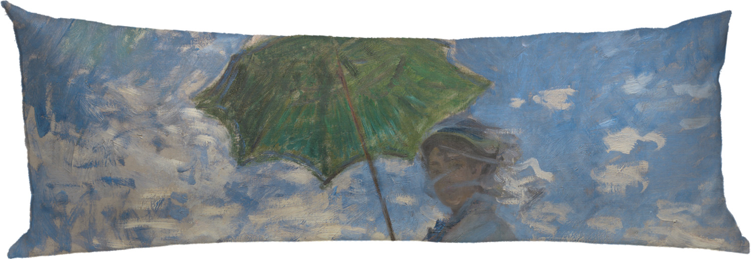 Woman With A Parasol or La Promenade depicts Monet's wife and their son. Although Monet's most obvious strength in his paintings was landscapes, it is quite evident in this painting of his family that he was quite talented at portraying the human figure as well. This painting was intended to be a more candid moment rather than a traditional portrait. In fact, Monet most likely painted this scene in one sitting, maybe even in only a few hours. Monet is quite successful in capturing this typical moment with his family.