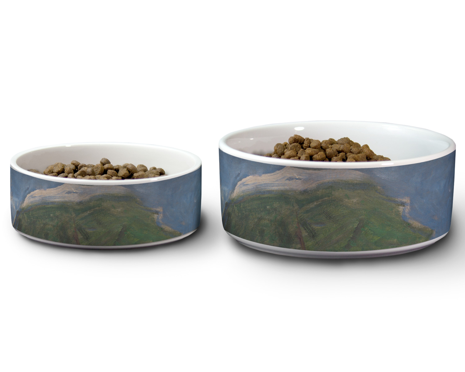We carry these custom dog bowls in two available sizes: medium and large.The medium is 6 inches in diameter and 2.5 inches tall, and can therefore suit pets who eat up to 2.5 cups of food per meal. The large pet bowl is 7 inches in diameter and 3 inches tall, and suits pets who require up to 4.5 cups of food per meal.